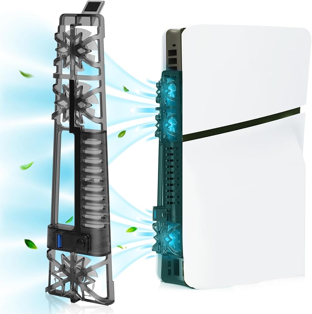 PS5 Slim Cooling Fan with Led Light, Quiet Cooler Fan for PS5 Slim Accessories with 3 High-Speed Fans, USB3.0 Port for PS5 Slim Disc and Digital Edition