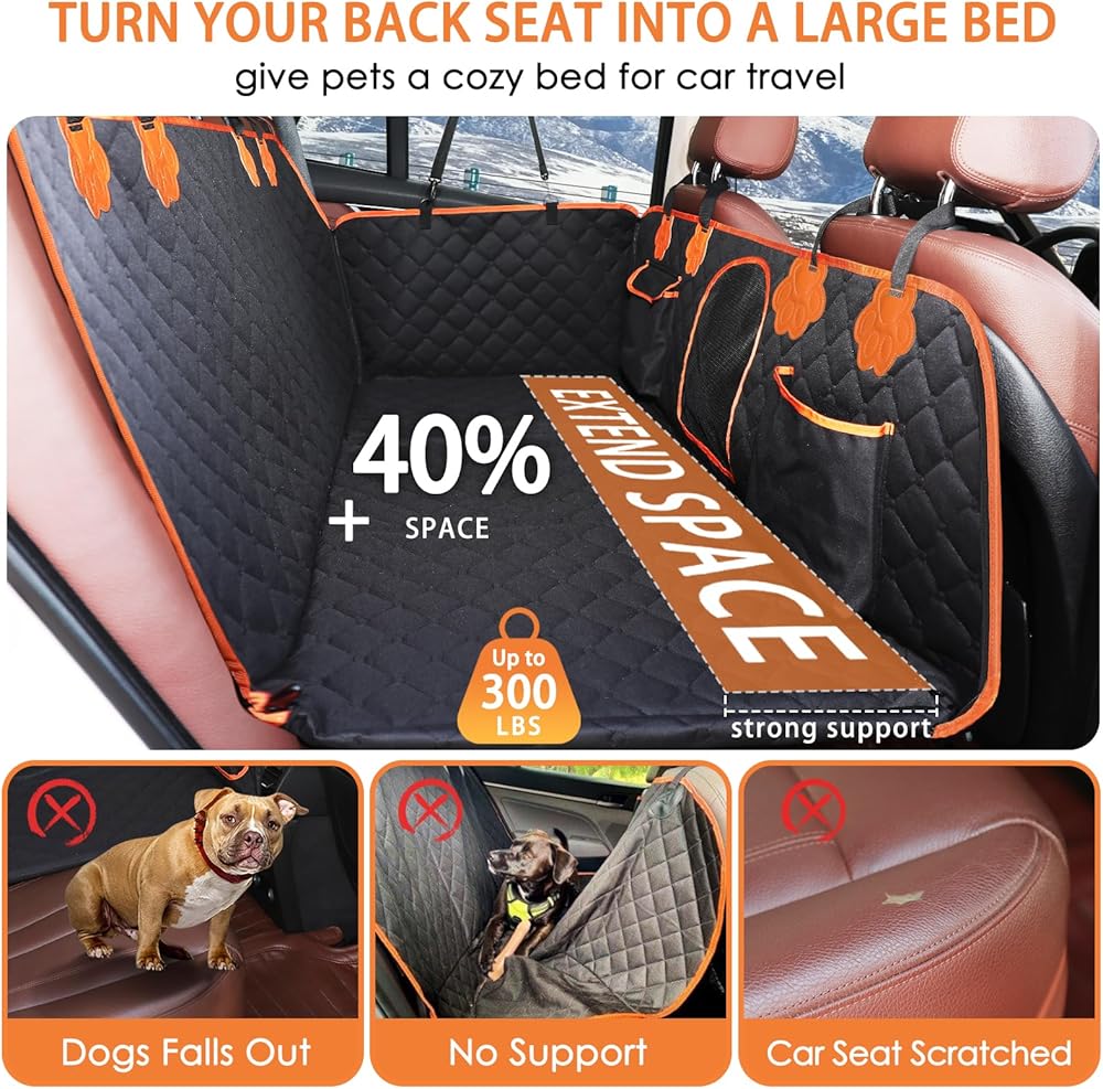 Ryoizen Dog Car Seat Cover for Back Seat, Back Seat Extender for Medium Large Dogs, Hard Bottom Dog Hammock Travel Camping Bed Supports 330lb, Waterproof Backseat Protector for Pet, Car, Truck, SUV