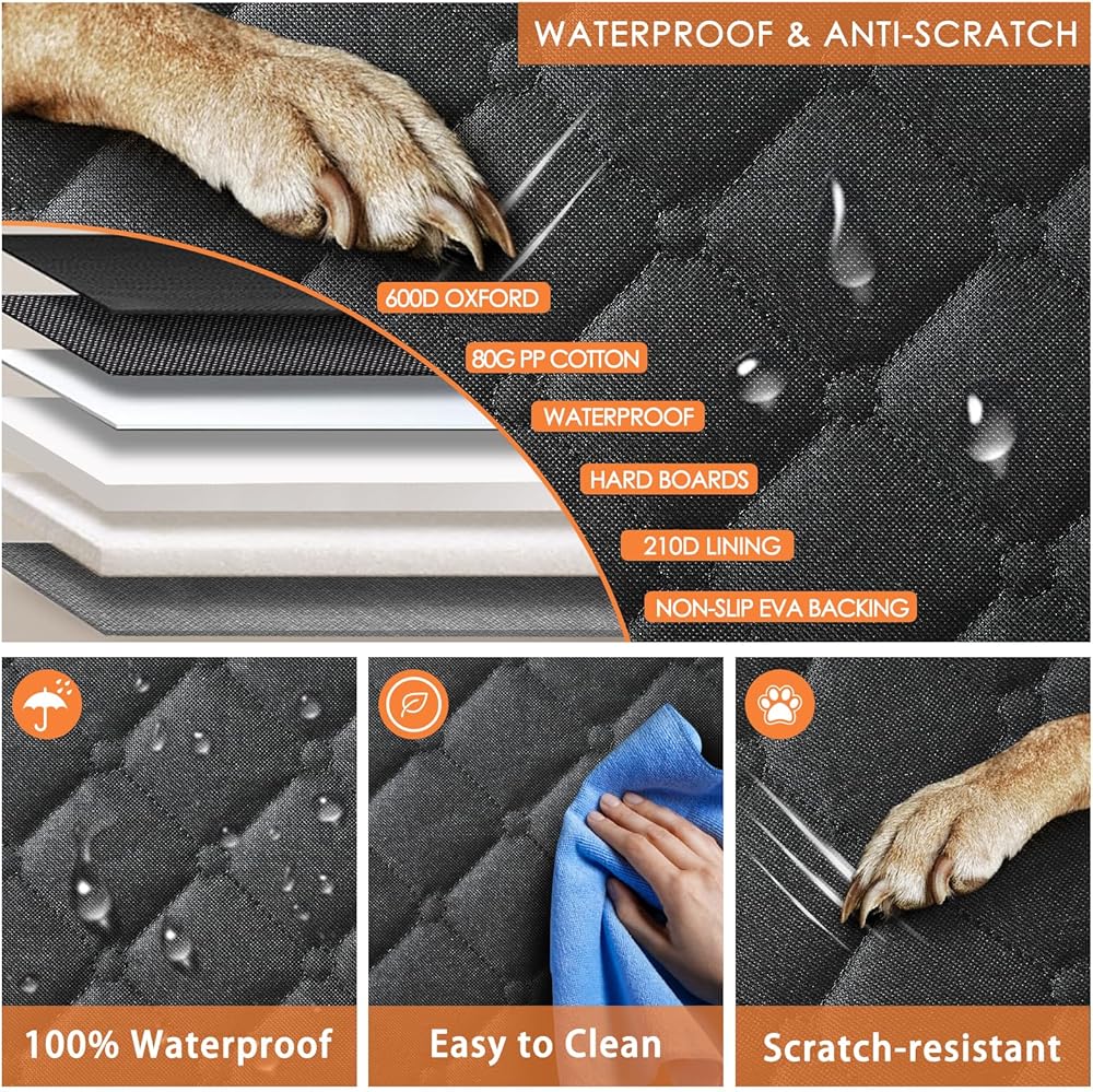 PREMIUM PERFORMANCE BACKSEAT COVER: Ryoizen back seat pet cover for dogs is made from premium materials with 7 layers, featuring 4X4-density Oxford cloth, a PU coating layer paired with a TPU waterproof layer, and dual 100% waterproof layers to protect your seat from scratches, mud, liquid, and hair. The non-slip bottom makes the car seat protector more secure, preventing your dog from slipping. The seat covers are vehicle necessities for large dog owners