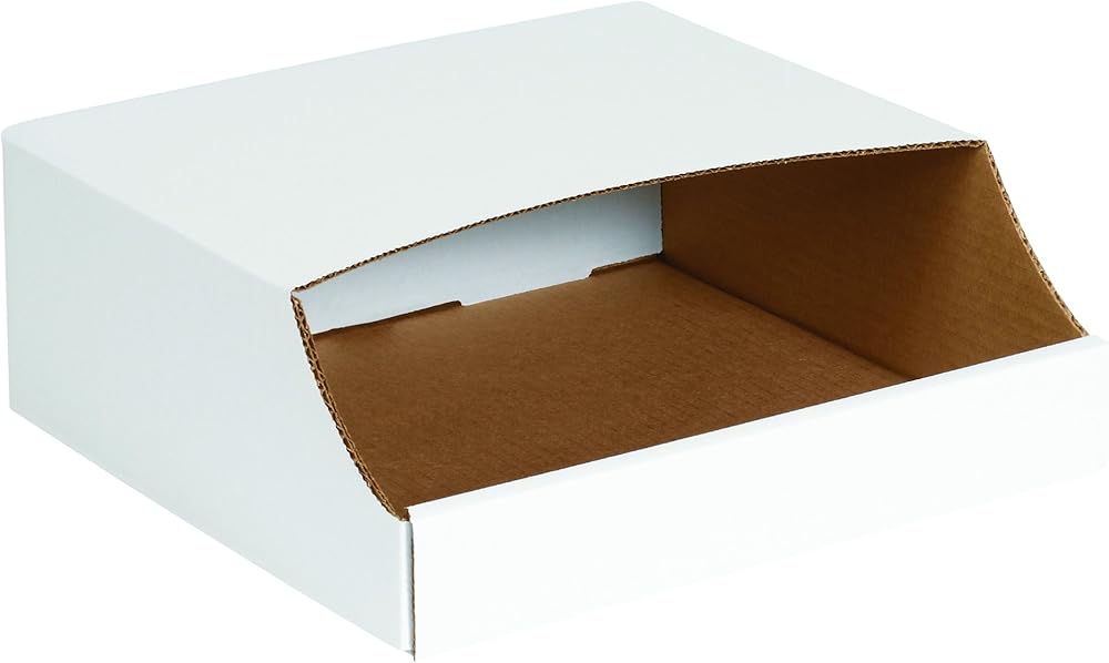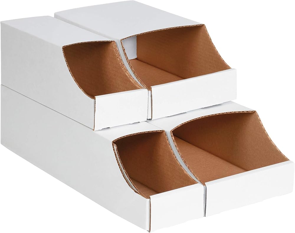 صناديق صناديق قابلة للتكديس من BOX USA BBINB412، 4 بوصة × 12 بوصة × 4 1/2 بوصة، أبيض أويستر (عبوة من 50 قطعة)