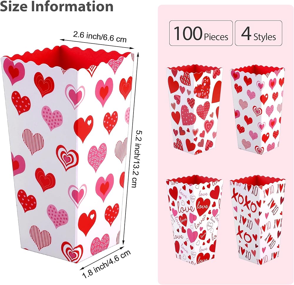 • تتضمن العبوة: سوف تحصل على 100 قطعة من علب الفشار لعيد الحب بأربعة تصميمات مختلفة و25 قطعة لكل تصميم، وهو ما يكفي لاستخدامها. كل صندوق فشار مطبوع بنمط قلب رومانسي، مناسب جدًا لحفلات عيد الحب.