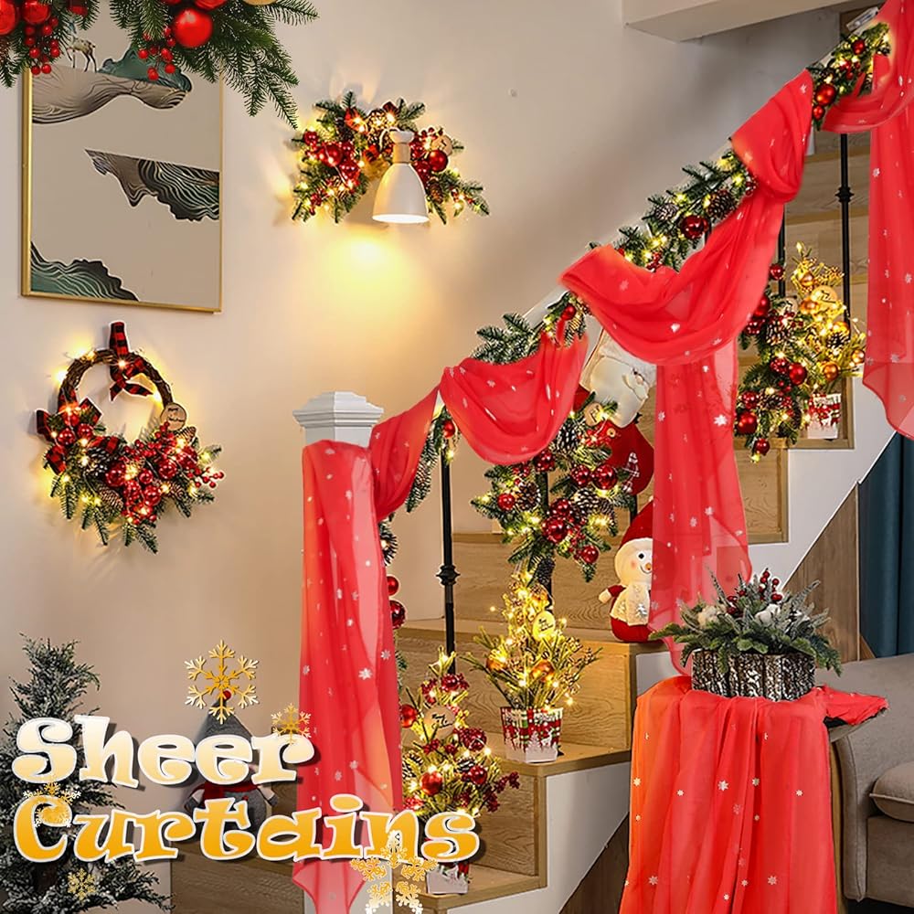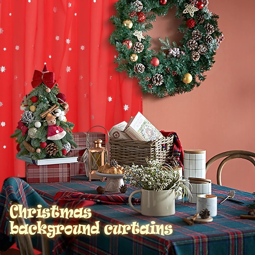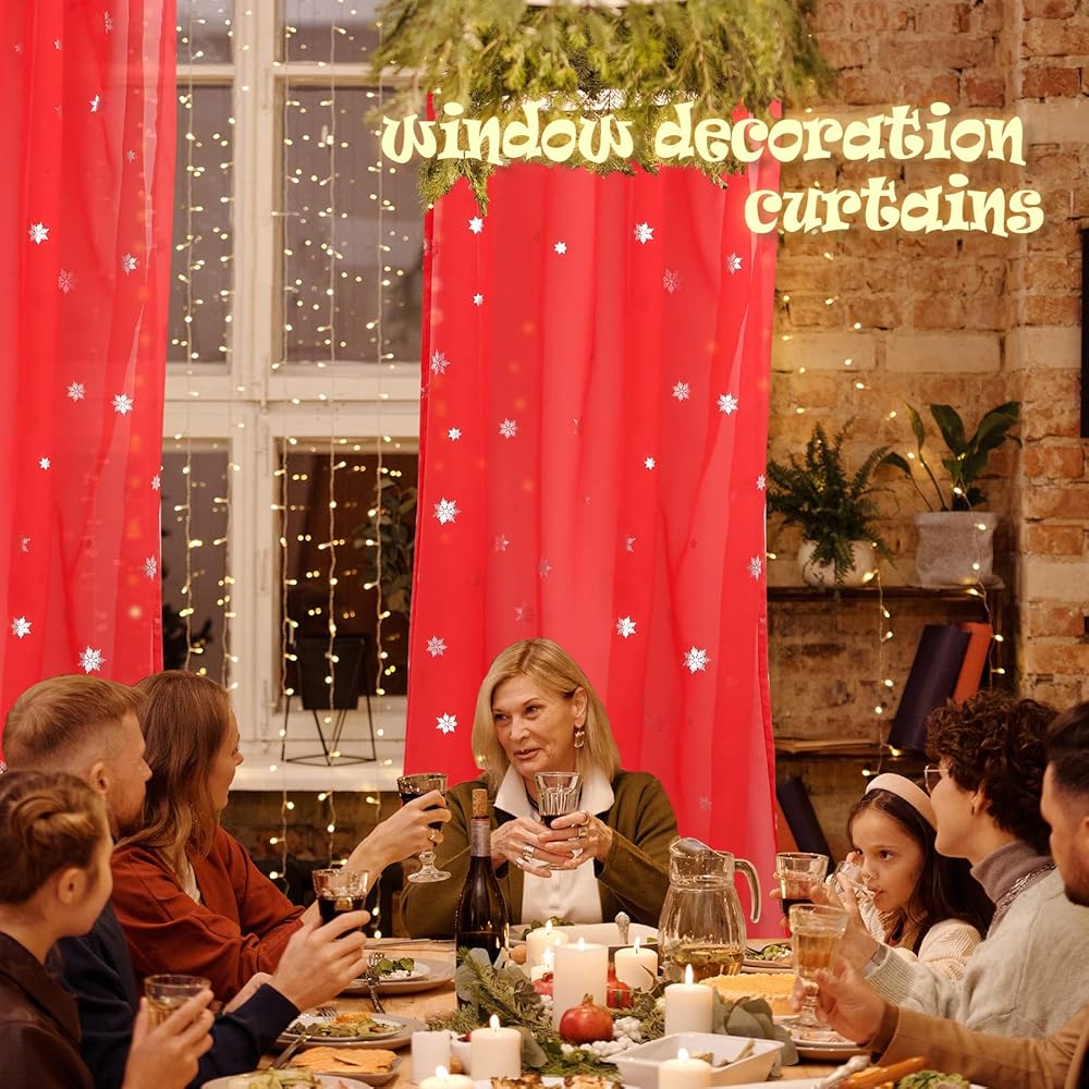 bgment الأحمر عيد الميلاد وشاح الستائر لغرفة المعيشة 144 بوصة طول، نافذة شفافة وشاح الستارة زينة عيد الميلاد في الأماكن المغلقة مع طباعة الفضة الثلوج، 1 لوحة، كل لوحة 52 بوصة واسعة