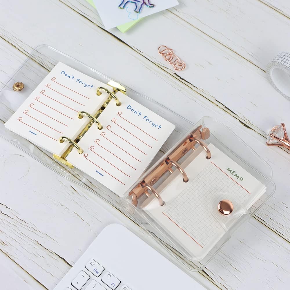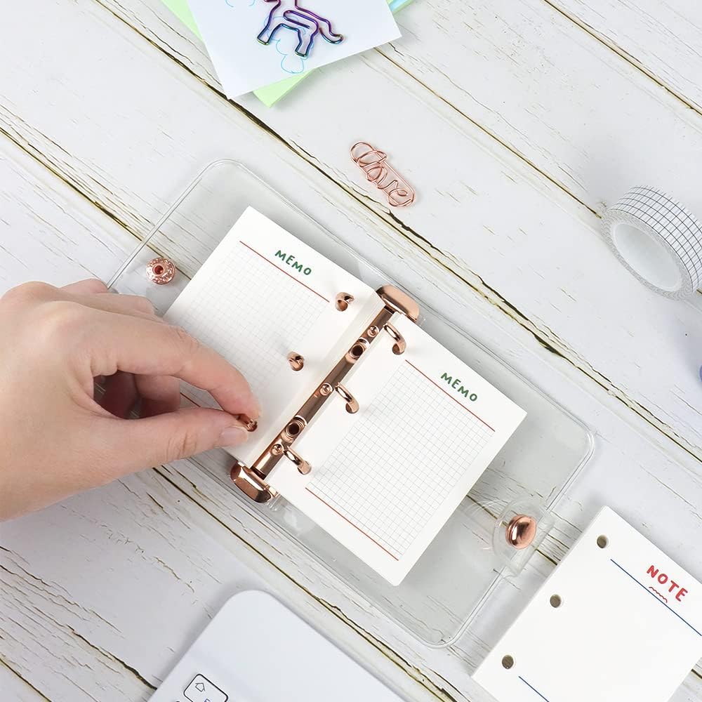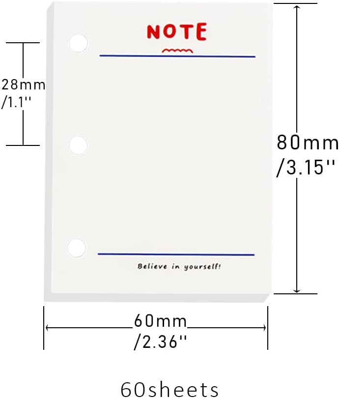 مقاس ورق التغليف الصغير ذو 3 حلقات 60 مم × 80 مم (2.36 بوصة × 3.15 بوصة)، ومسافة الحلقة المستديرة 28 مم (1.1 بوصة)، 3 فتحات مثقوبة مسبقًا للإدخال الفوري، مناسبة للمجلدات الصغيرة جدًا (يرجى ملاحظة الحجم، غير مناسب) لجميع المجلدات الصغيرة ذات 3 حلقات)