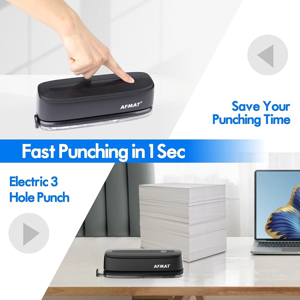 Electric 3 Hole Punch, Upgraded 10000 Punching Times, 20 Sheets Capacity, Battery Powered Three Hole Puncher, Corded Electric Paper Puncher, Fast & Effortless & Long Lasting for Office/School/Studio