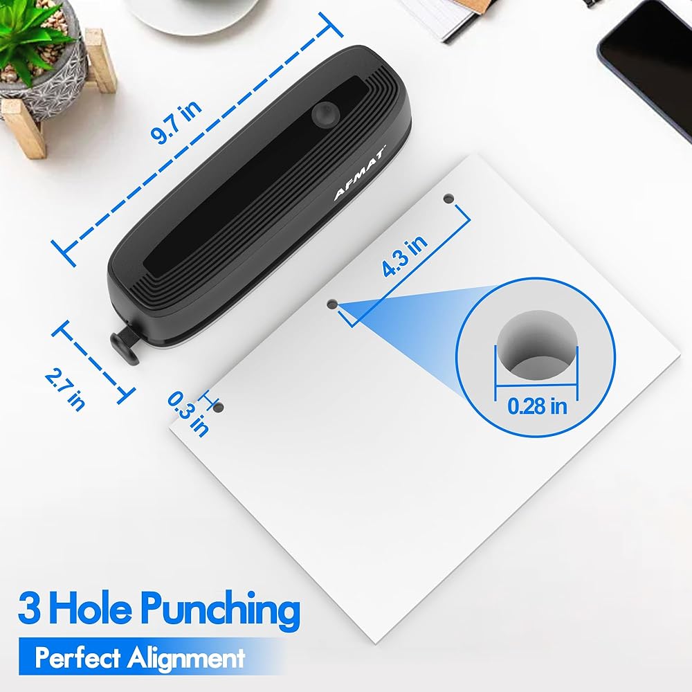 【Easy to Use】 With the adjustable paper guide on the side, the pages are lined up nicely for accurate punching and stress-free filing. Just a simple press of the button, this hole punch will do a quick, efficient job in no time. The end result will show up professional, and the holes(φ0.28in) left fit in your binder perfectly for presentation. Go get it, it will for sure make your life easier!
