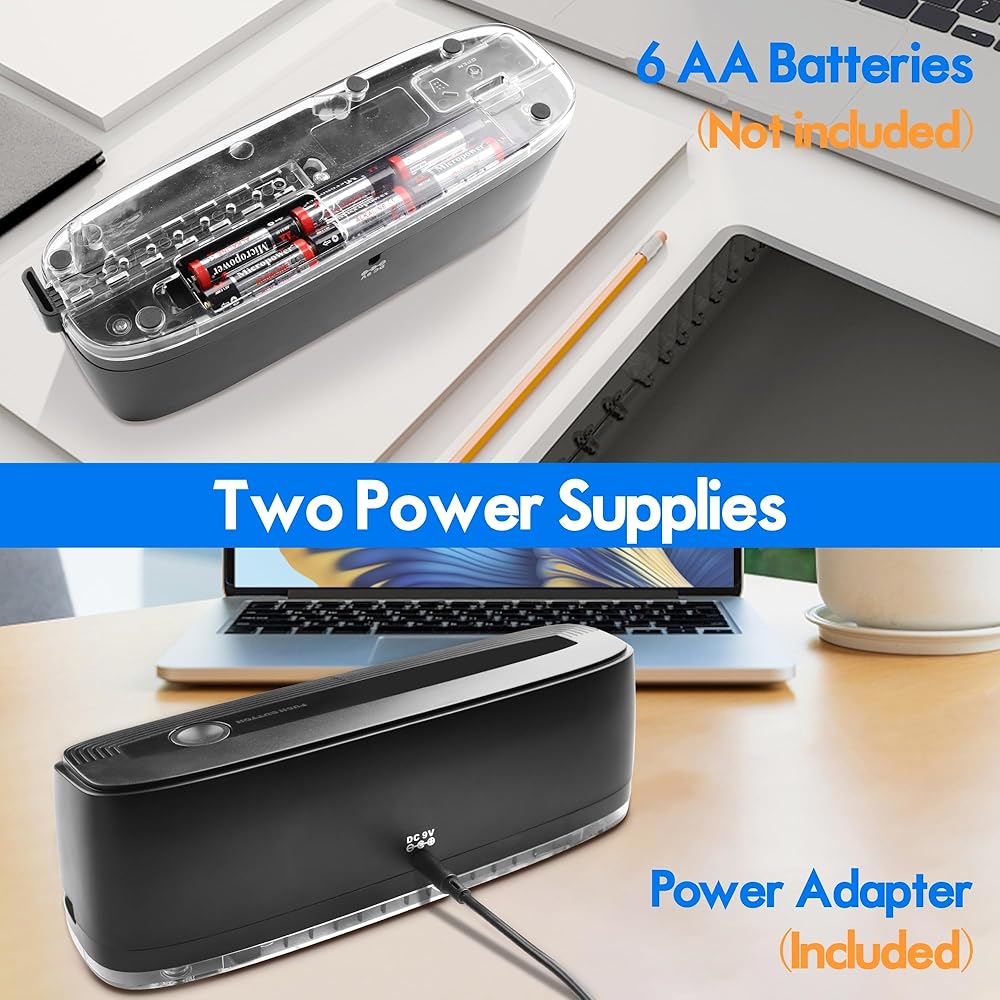 【Corded Electric or Battery Operated】Adapter included, batteries(6pcs AA) are not. The choice of using a cord or batteries makes this electric punch versatile for indoor use and also for when traveling to other locations(It is light and easy to move as well). Once connected to either power source, it runs constantly, very fast and stable like it has far more strength than needed(no jams).