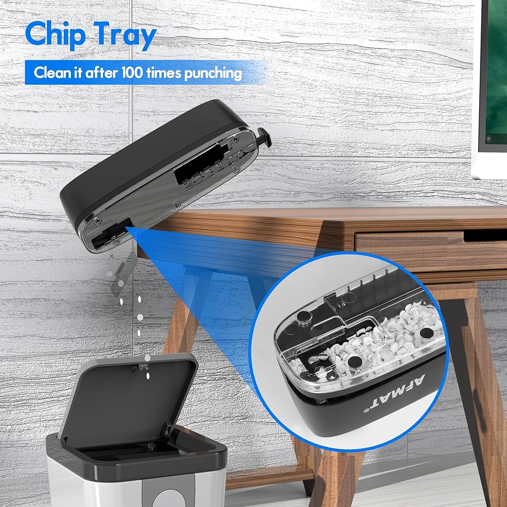 【Easy to Empty】 Emptying is a breeze and pretty mess-free as this 3 hole punch has a large compartment where paper dots are stored and also has an easy-to-open door for it for easy emptying. The bottom of the paper punch is encased in clear plastic so you can see when you need to empty it, and designed with non-slip pads that keep the hole punch from sliding when in use.