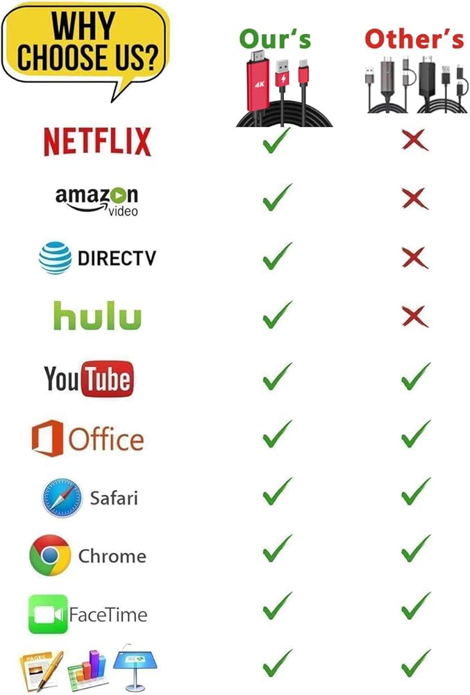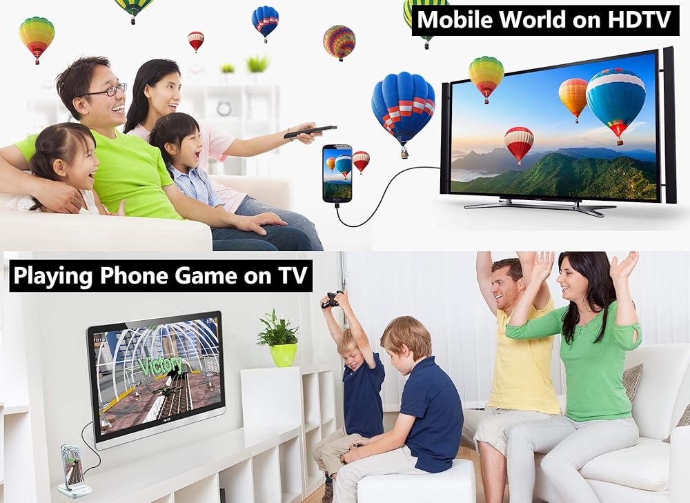 • محول الهاتف إلى HDMI للتلفزيون - التوصيل والتشغيل، دون الحاجة إلى أي برنامج تشغيل/ برنامج/ تطبيق بالإضافة إلى نقطة اتصال شخصية / WiFi أو Bluetooth؛ يدعم مكالمات الفيديو من FaceTime وSkype وWhatsApp وبث مقاطع الفيديو والصور والألعاب وعروض الشرائح على Facebook وYouTube وInstagram وTwitter وReddit وPinterest وSnapchat وIDMB وMicrosoft Office وما إلى ذلك. تتيح لك تجربة رائعة في عالم هاتفك المحمول، لعب ألعاب الهاتف على التلفزيون، والعمل باستخدام جهاز العرض، وحتى القيادة مع اللعب بالسيارة.