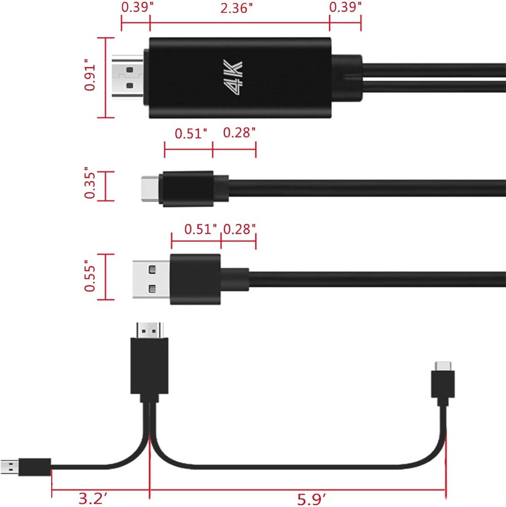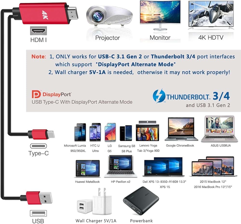 • محول الهاتف إلى التلفزيون - قم بتوصيل كابل USB بطول 6 أقدام بمحول طاقة (5 فولت @ 2 أمبير) لتزويد جهاز الكمبيوتر / الكمبيوتر / الهاتف الخاص بك في حالة عدم وجود طاقة. إنه حل رائع لعدم وجود طاقة عند العمل في المكتب أو لعب الألعاب أو مشاهدة الأفلام. كما يمكن استخدام كابل USB إلى النوع C ككابل شحن عادي بمجرد عدم الحاجة إلى الاتصال بأجهزة منفذ HDMI. واجهة USB-C قابلة للعكس بالكامل، وموصل HDMI لتوفير أقصى قدر من التوصيل وتحسين نقل الإشارة.
