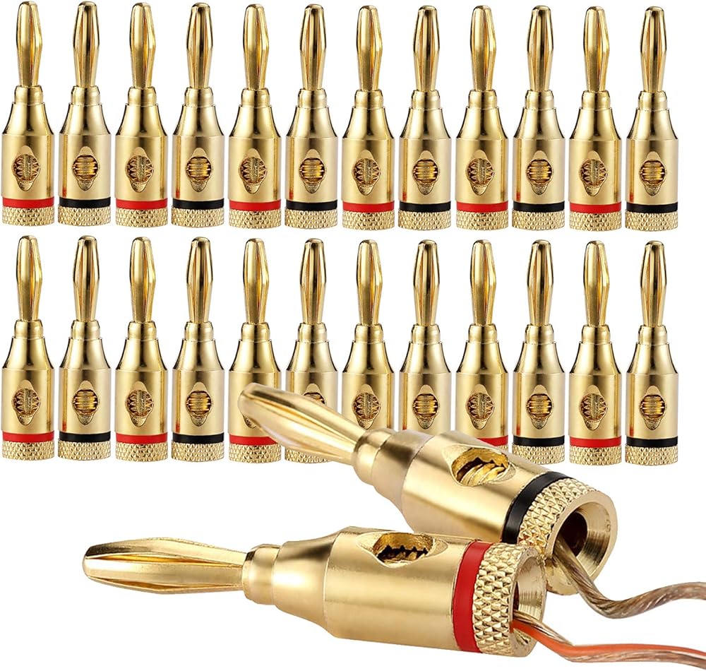 سدادات مكبر صوت موز مطلية بالذهب 24 قيراط، نوع لولبي مفتوح، BW3130، 12 زوج