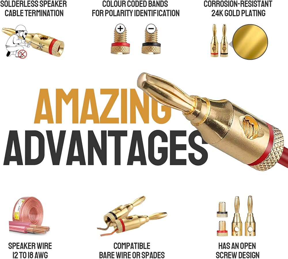 • (5) شراء خالٍ من المخاطر! نحن نقف وراء منتجاتنا! يعد المسمار المفتوح لقوابس الموز الخاص بنا هو الخيار الأفضل من حيث عمر الخدمة والجماليات. جميع مقابس الموز وموصلات السماعات التي تباع بواسطة JJunLiM تأتي مع ضمان استبدال مجاني في حالة وجود أي مشاكل في الجودة أو لم تكن كما تريد. لا تتردد في الاتصال بنا! دعم العملاء على مدار 24 ساعة.