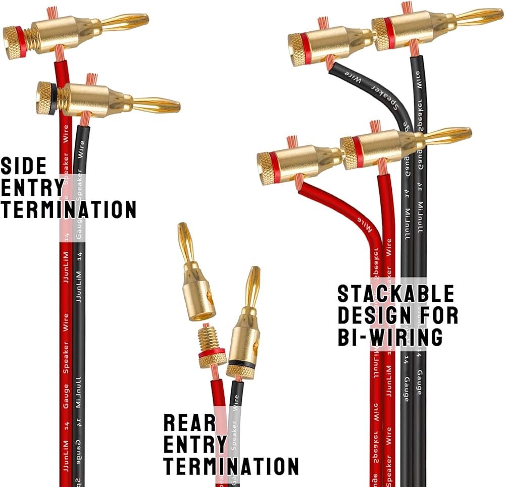 • (4) وهي متوافقة مع معظم أسلاك السماعات الموجودة هناك. ستتمكن من إعدادها بكابلات يتراوح حجمها بين 12 AWG و18 AWG. وهذا يعني أنك ستتمكن من توصيلها بمعظم مكبرات الصوت وأجهزة إخراج الصوت الموجودة هناك.