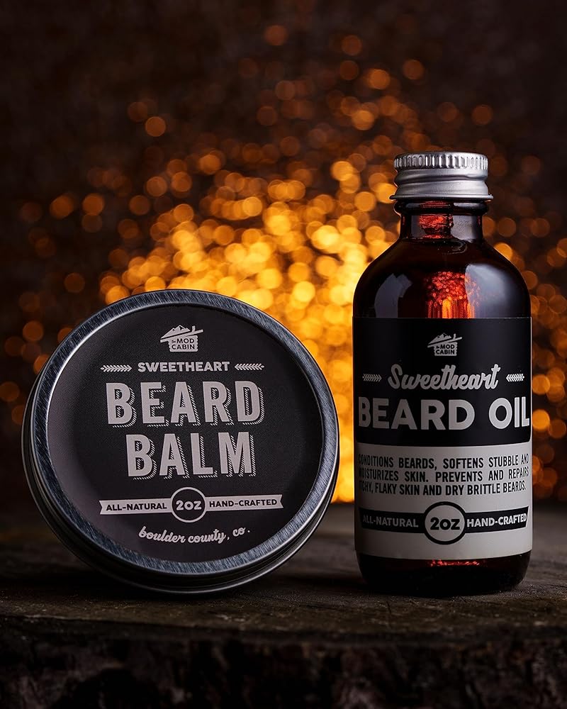 Directions: Detangle beard with a comb. Shake bottle well. Pour a small amount of beard oil in palm about the size of a dime, and massage into skin and beard. Use more for longer, thicker beards. Optionally, you can top with The Mod Cabin Beard Balm to seal in moisture, provide hold, and help beard appear thicker. Finish by brushing beard to evenly distribute oils.