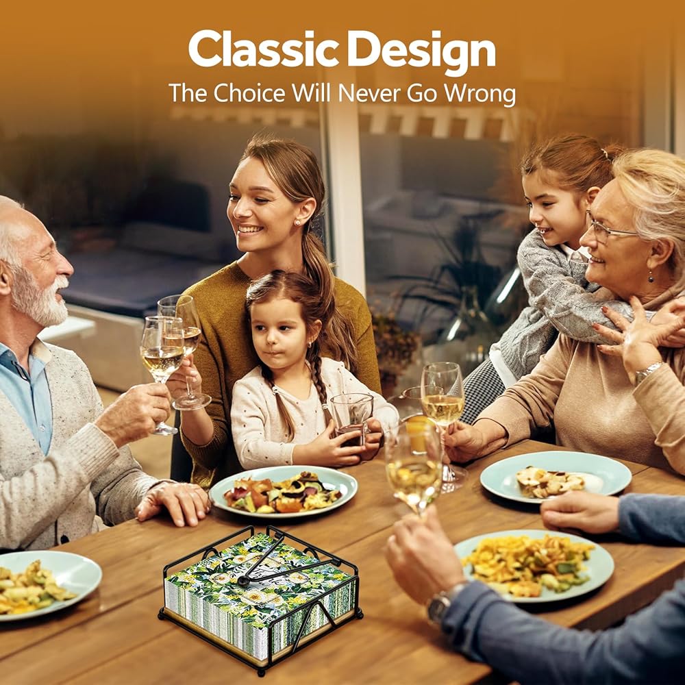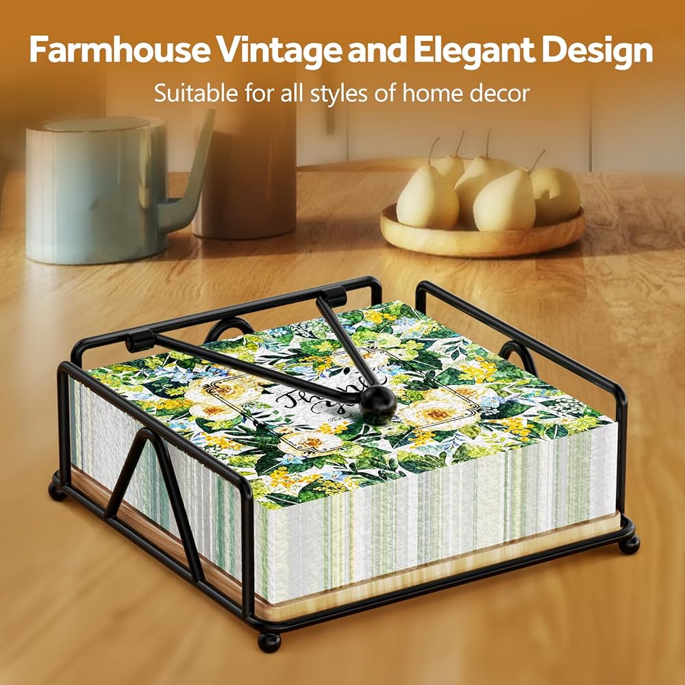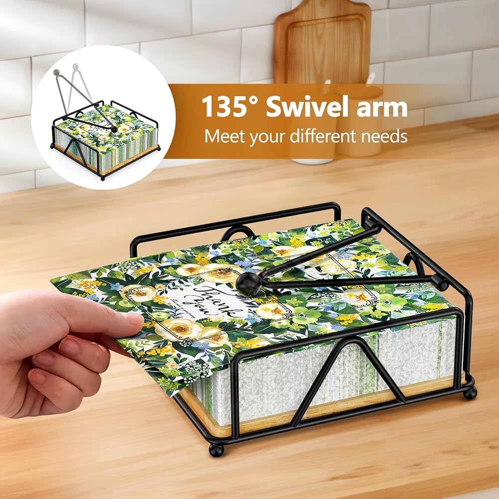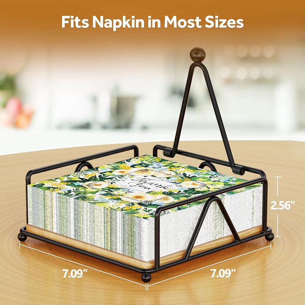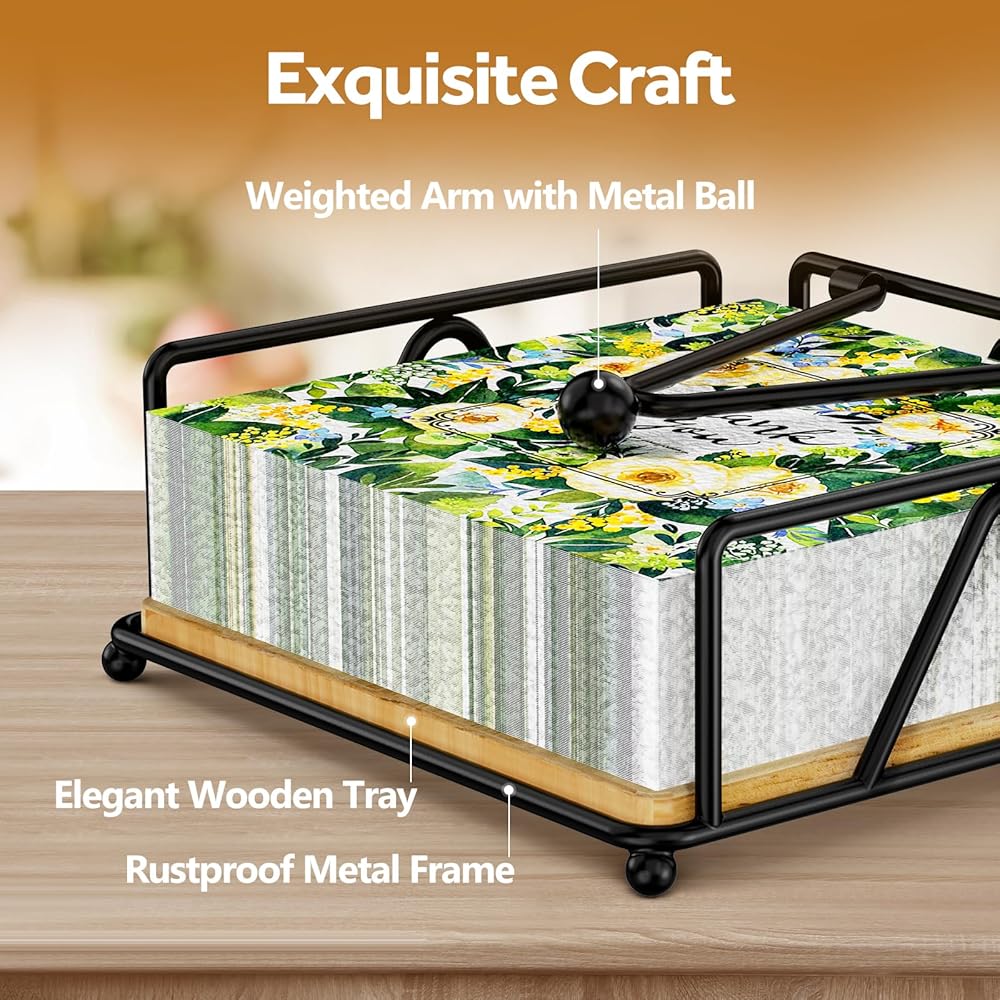 𝐏𝐑𝐀𝐓𝐈𝐂𝐀𝐋 & 𝐒𝐓𝐄𝐀𝐃𝐘 - Designed in the dimension of 7.1"×7.1", the holder is suitable for standard luncheon napkins or other flat tissues within the size. The weighted arm ensures the napkins won't fly away or slide off.