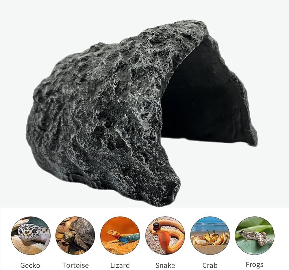 مادة فاخرة: هذا الكهف المخفي لموطن الزواحف مصنوع من الراتنج عالي الجودة، وهو قوي وسهل التنظيف وكبير بما فيه الكفاية. الألوان الخاصة والأنسجة المصنوعة بعناية تجعل منزل الاختباء الصخري يبدو أكثر طبيعية وواقعية.