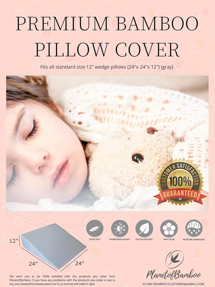 ملاءمة مثالية: تم تصميم هذا الغطاء لوسائد إسفين مقاس 24 × 24 × 12 انش. ببساطة قم بتمريرها في الوسادة، ثم قم بسحّاب الحافظة، واسترخي!