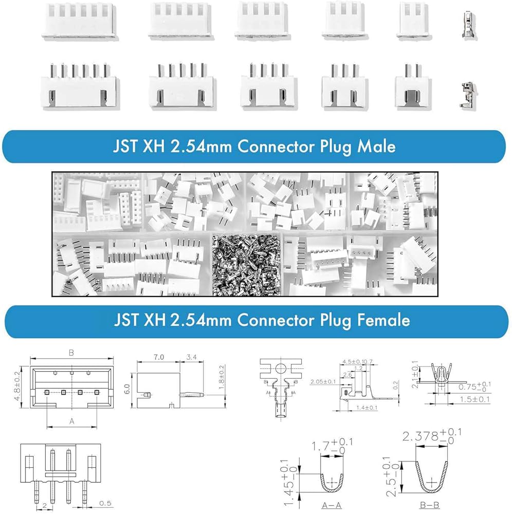 ★ تشمل العبوة: تتضمن هذه المجموعة موصلات دبوس أنثى JST-XH 2.54 مم 320 قطعة، 2/3/4 دبوس ذكر وأنثى كل 20 قطعة، 5/6 دبوس ذكر وأنثى كل 15 قطعة إجمالي 500 قطعة، مخزنة في صندوق بلاستيكي.
