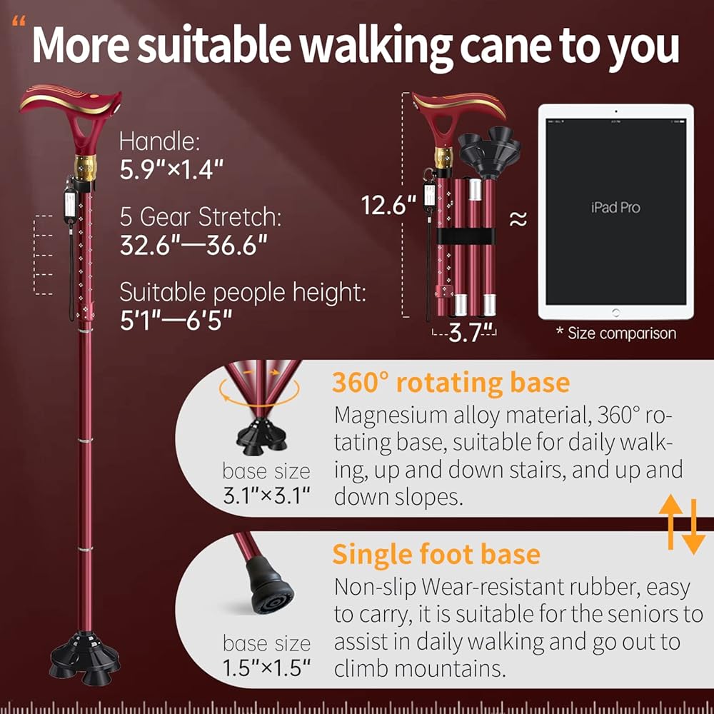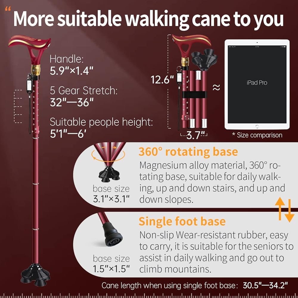 🥇【حامل مصباح قابل للتعديل، شحن مباشر عبر USB】تعتمد عصا المشي هذه المزودة بالضوء على شريحة إضاءة LED عالية الجودة، وموجة كهرومغناطيسية 380-780 نانومتر، والضوء أكثر تجانسًا، ويقوم حامل المصباح بضبط الشعاع المنخفض والعالي لضمان أن ويكون بصر كبار السن أكثر وضوحًا وإشراقًا. تتميز عصا المشي بوظيفة الشحن المباشر عبر USB، وبطارية بوليمر مدمجة، تشحن لمدة ساعتين، ويمكن استخدامها لمدة تصل إلى 30 يومًا، حتى تتمكن من التخلص من مشكلة استبدال البطارية.