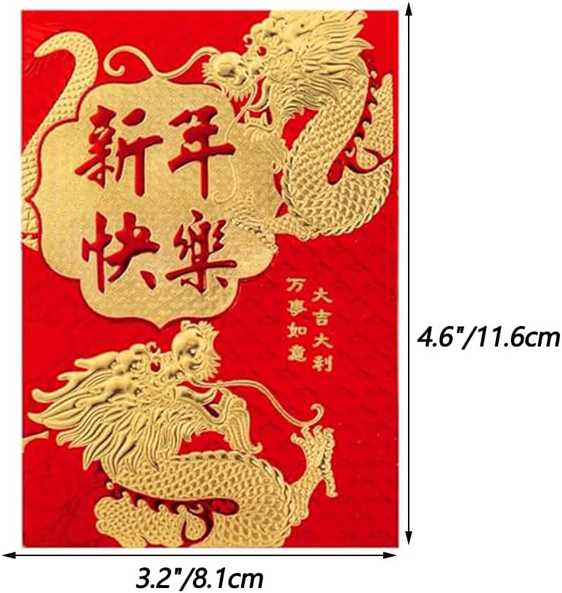 🧧【مظاريف حمراء للعام الصيني الجديد】--- تصميم جديد لعام التنين الصيني 2024. الأظرف المحظوظة بحجم 8.1 × 11.6 سم / 3.2 × 4.6 بوصة، يمكن وضع آلاف الدولارات فيها. يمكن وضع الشكل المستطيل يمكن حملها أو وضعها في الحقيبة دون عناء.