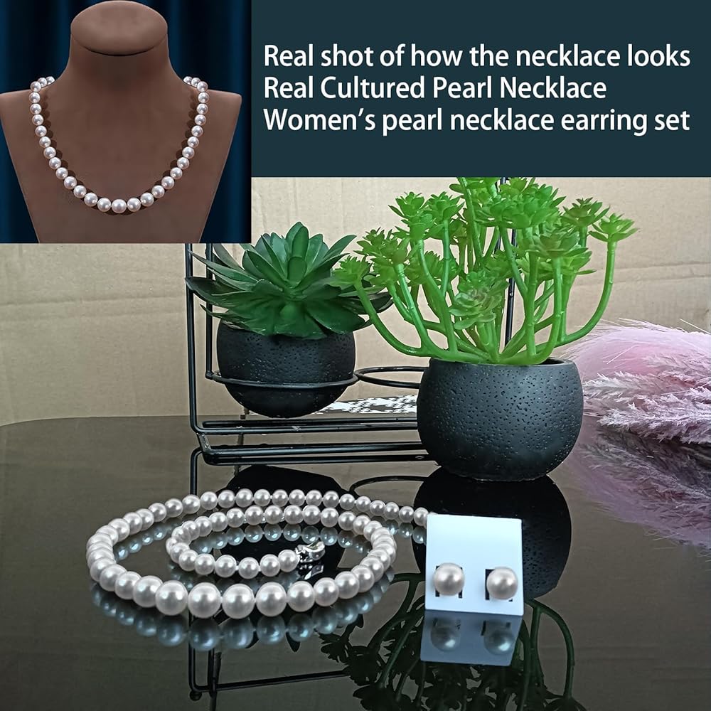 • 【استخدام القلادة】: تتضمن مجموعة اللؤلؤ هذه عقدًا جميلاً وزوجًا من الأقراط المتطابقة، وهدية الذكرى السنوية للزفاف لزوجتك، وهدية عيد ميلاد لسيدة، وهدية لجدتك، وهدية عيد الميلاد.