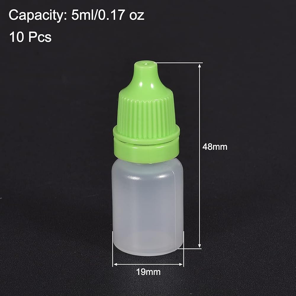 [السعة] - 5 مل/0.17 أونصة. تتضمن العبوة 10 قطع من الزجاجات الفارغة بالقطارة البلاستيكية