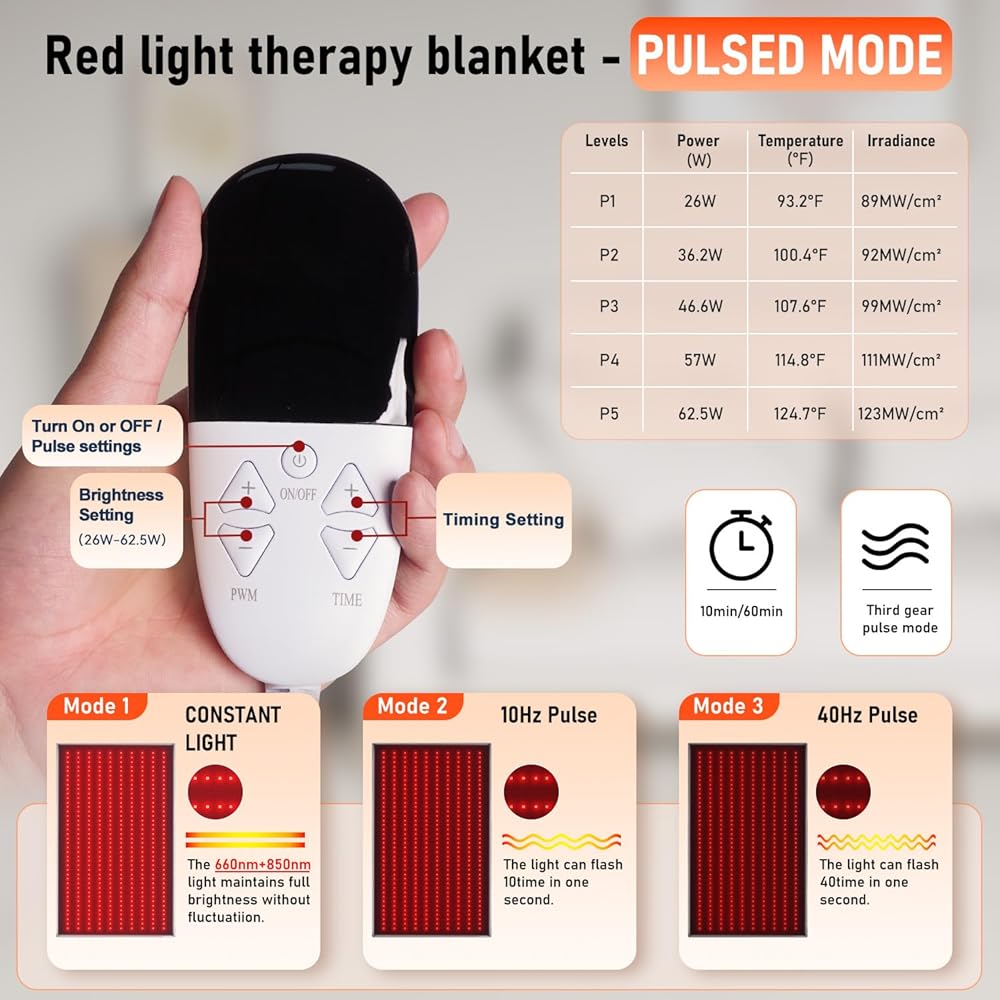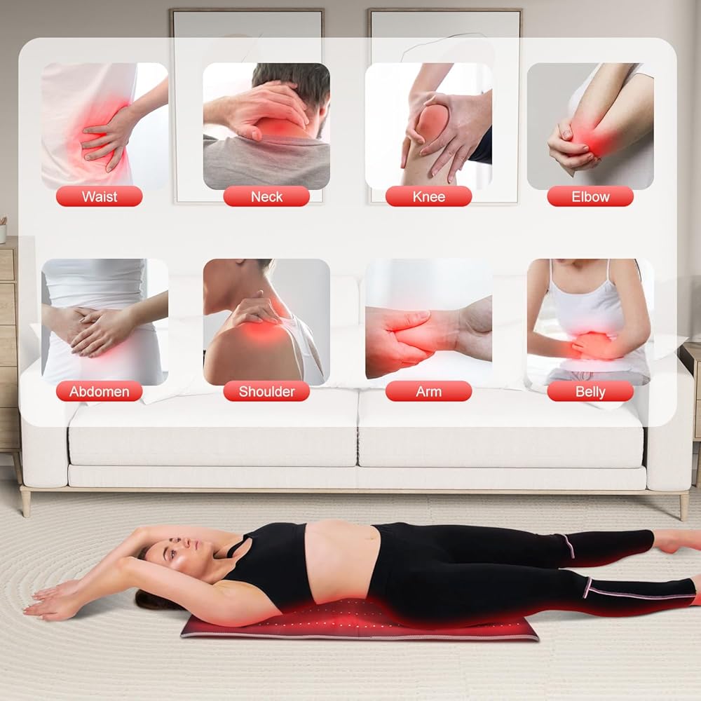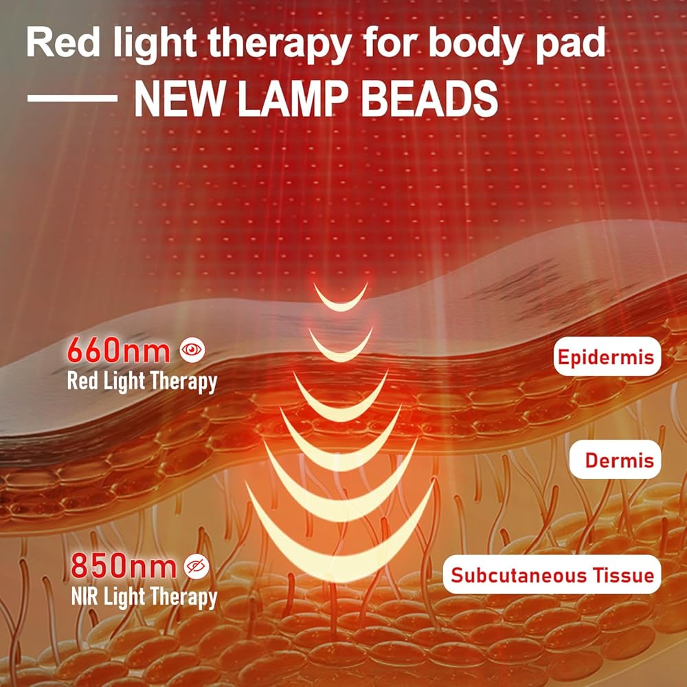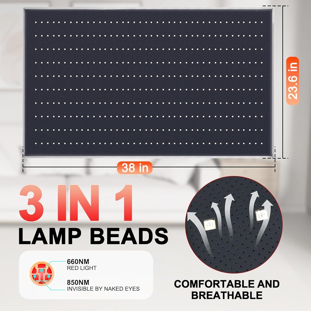 تصميم للراحة: توفر بطانية العلاج بالضوء الأحمر هذه أكثر من مجرد تقنية لتجربة علاج مريحة بالضوء الأحمر. يوفر تصميمه الواسع مقاس 23.6*38.00 بوصة مساحة كبيرة لتجربة غامرة مريحة. يلبي التصميم المدروس احتياجات المستخدم ويسمح بالحركة غير المقيدة أثناء العلاج بالضوء الأحمر لكامل الجسم.