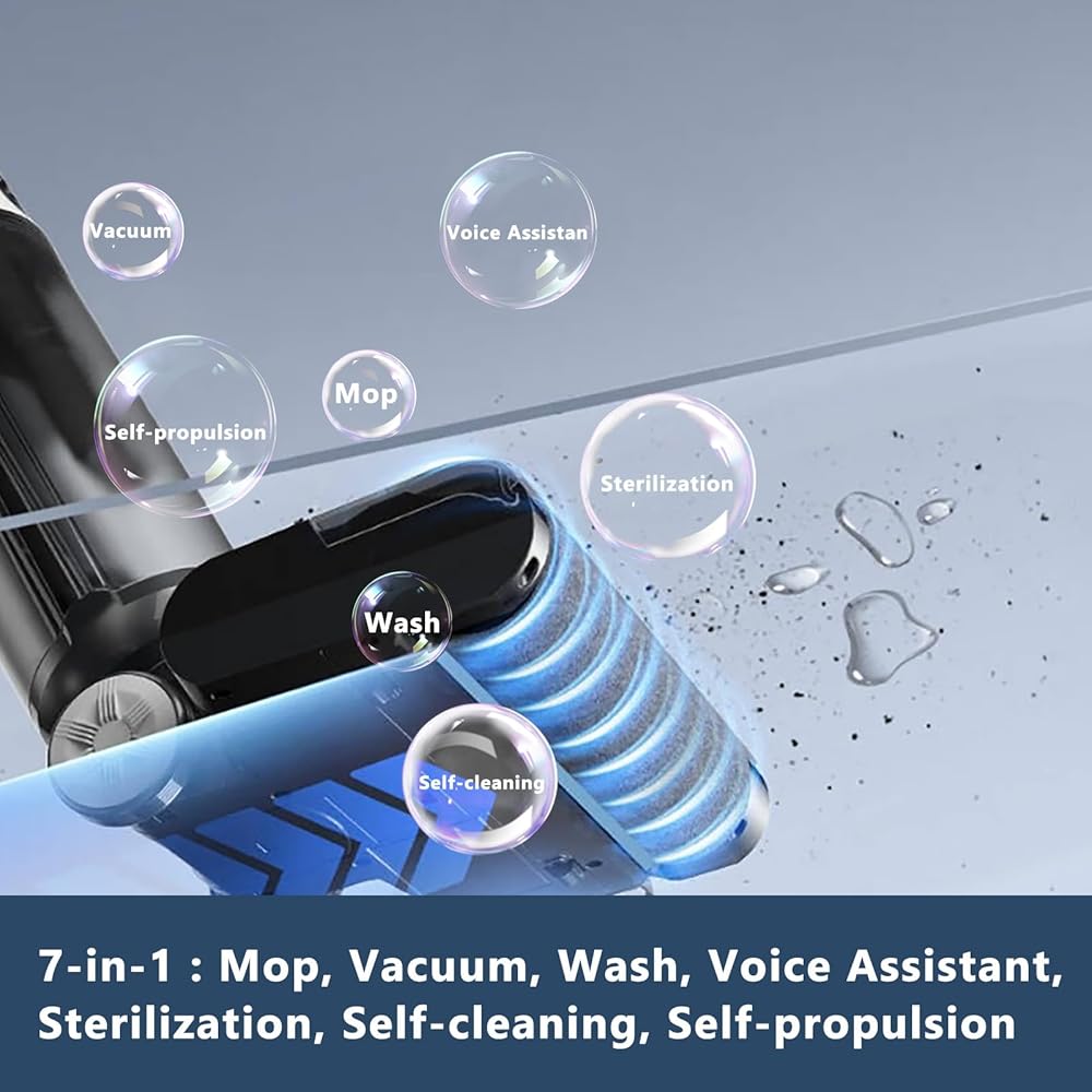 【الدفع الذاتي لسهولة الحركة】تم تصميم المكنسة الكهربائية الجافة والرطبة اللاسلكية بتصميم ذاتي الدفع يساعدك على التحرك بحرية، ويمكنها الذهاب إلى أي مكان وتنظيف أي فوضى.