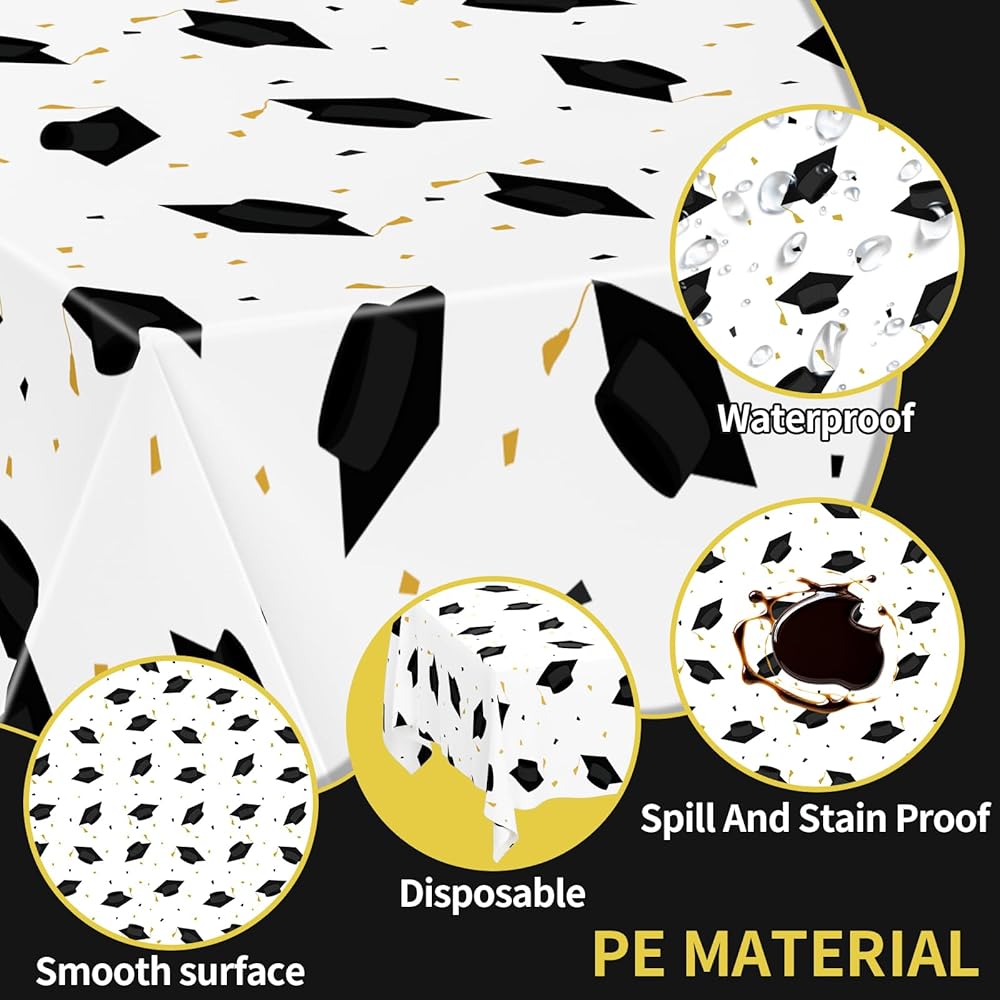 • 🎓【وفر وقتك】: غطاء طاولة التخرج للاستعمال مرة واحدة يوفر لك من متاعب تنظيف الطاولة! قم بتنظيف الفوضى بعد الحفلة في ثوانٍ، يمكنك قضاء المزيد من الوقت للاستمتاع بالحفلة