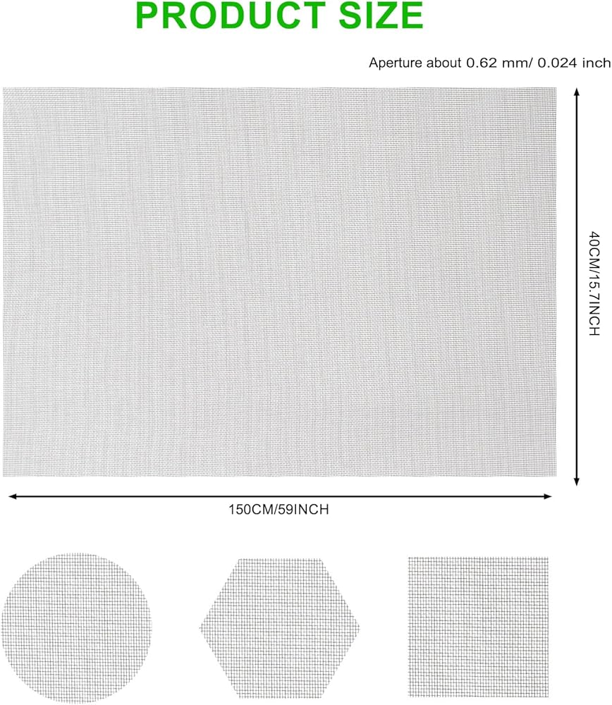 • محتويات العبوة: تحصل على قطعة واحدة من شبكة أسلاك الفولاذ المقاوم للصدأ مقاس حوالي 40 × 150 سم / 15.7 × 59 بوصة، والفتحة حوالي 0.62 × 0.62 مم، وقطر السلك حوالي 0.23 مم.
