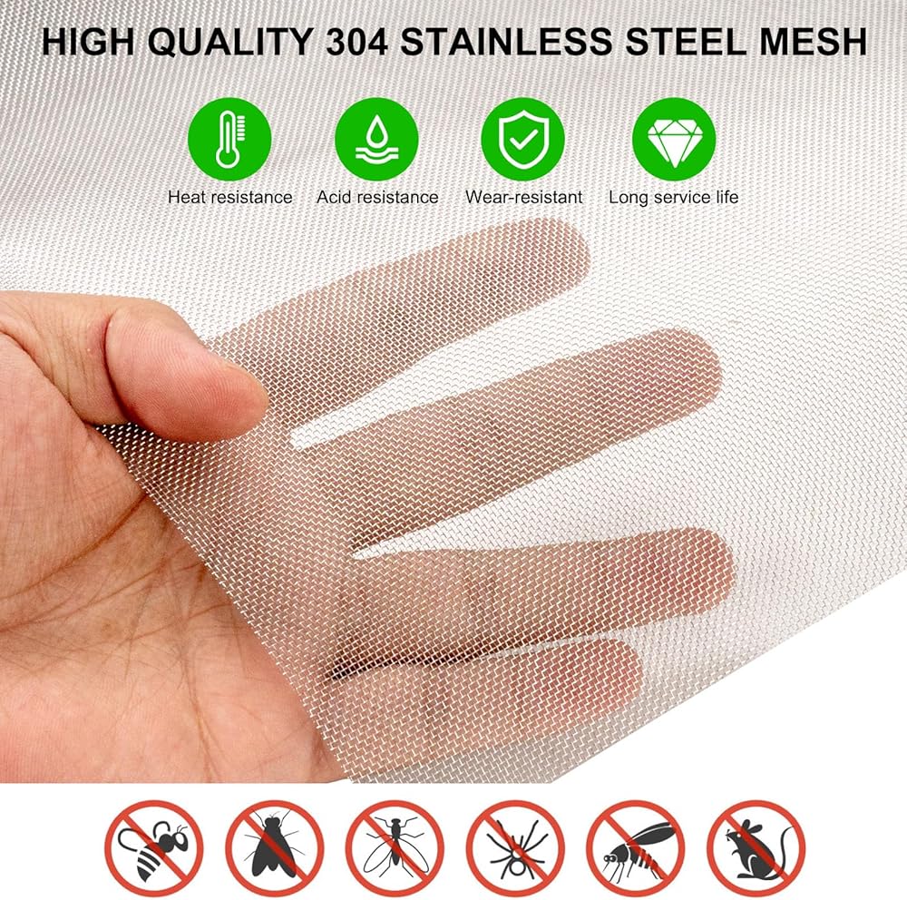 304 شبكة سلكية منسوجة من الفولاذ المقاوم للصدأ، مقاس 30 شبكة: 15.7 بوصة × 59 بوصة (40 × 150 سم) شبكة سلكية لشاشة النافذة، تمنع دخول ثعابين الفئران والفئران والدبابير والقوارض، سهلة القطع والتركيب