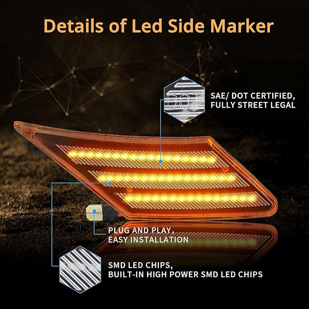 ☞سطوع فائق: 6000 كلفن لمصباح وقوف السيارات الأبيض و3200 كلفن لإشارة الانعطاف الكهرمانية، 18 مصباح LED مدمج عالي الجودة، وثلاثة صفوف من أنابيب نيون LED.
