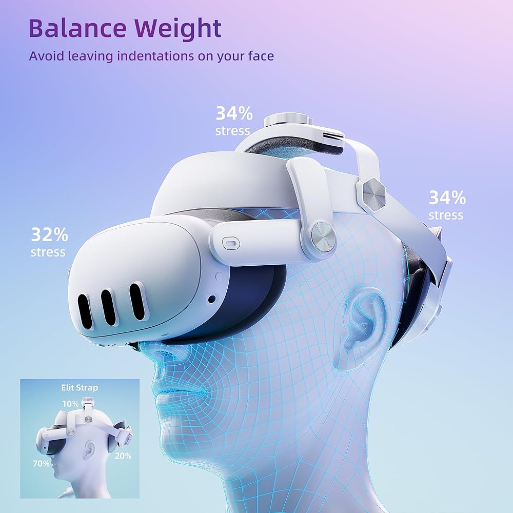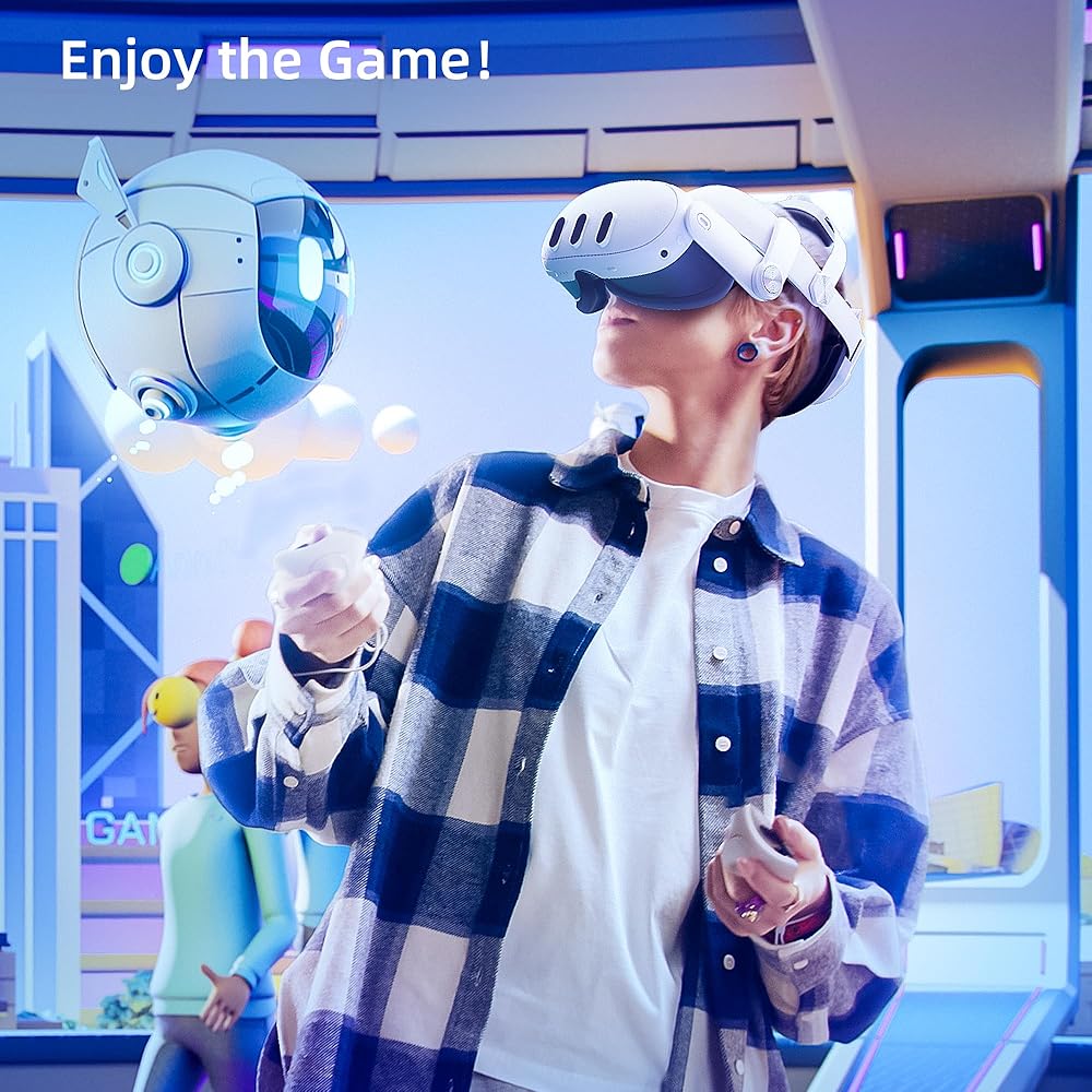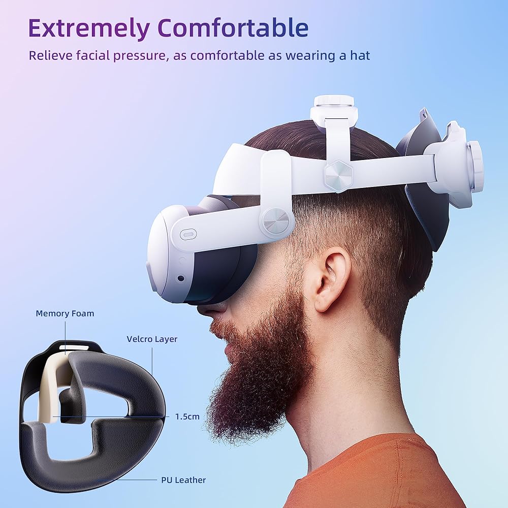 【راحة ألعاب الواقع الافتراضي المحسنة】 استمتع براحة لا مثيل لها في عالم الواقع الافتراضي مع حزام الرأس Halo، المصمم بخبرة لـ Meta Quest 3. انغمس في ألعاب الواقع الافتراضي المفضلة لديك بشكل أعمق، مع تخفيف ضغط الرأس والوجه بشكل كبير. مع حزام الرأس المريح بتقنية الواقع الافتراضي، لا تقتصر ألعاب الواقع الافتراضي على اللعب فحسب، بل تتعلق بالانغماس في رحلة مريحة وسلسة