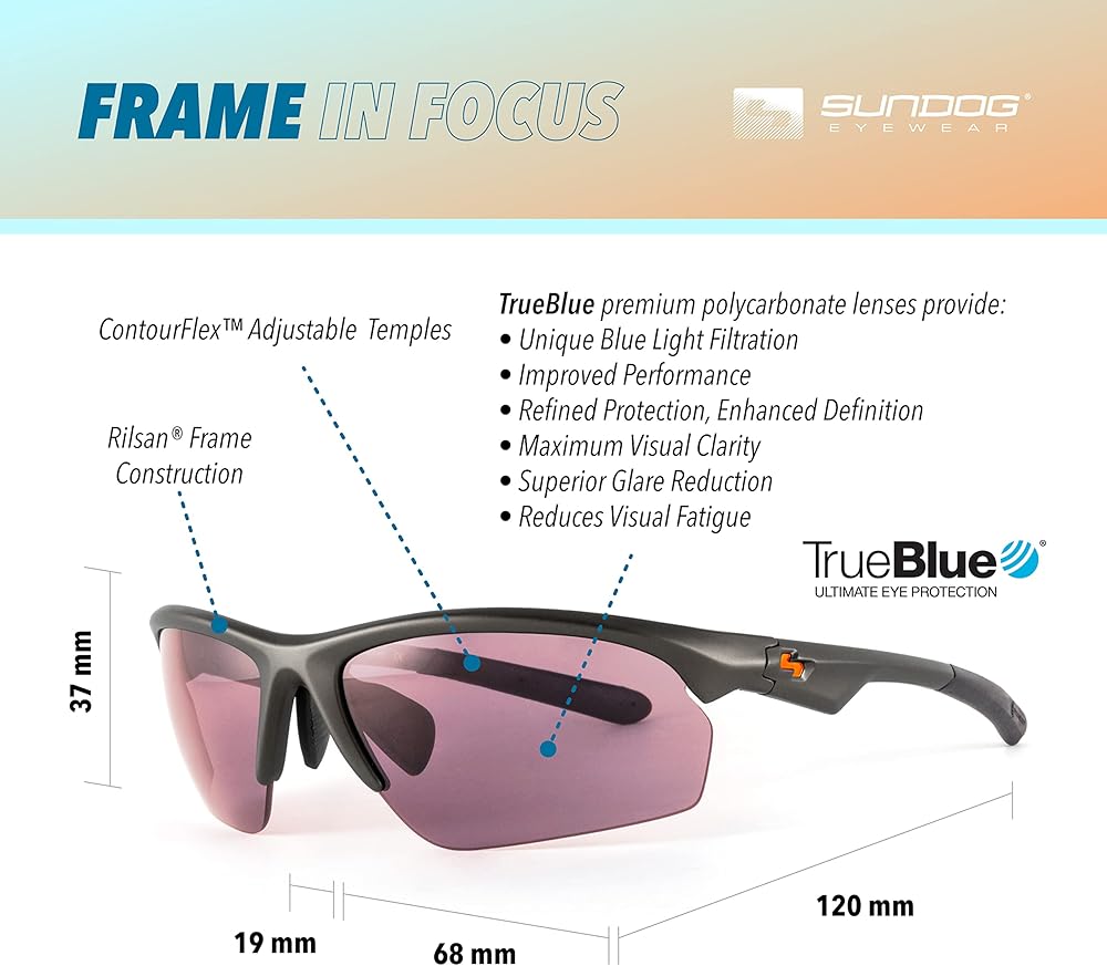 نظارات شمسية Sundog Eyewear الفاخرة للرجال والنساء - PRIME EXT TrueBlue - تقنية العدسات المميزة للحماية من الأشعة فوق البنفسجية - مناسبة تمامًا للجولف وصيد الأسماك والأزياء والطيار ونظارات القيادة - رمادي داكن غير لامع