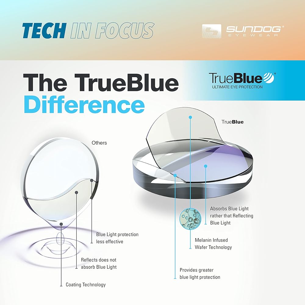 【 𝐔𝐍𝐈𝐐𝐔𝐄 𝐓𝐑𝐔𝐄𝐁𝐋𝐔𝐄 𝐋𝐄𝐍𝐒 】: نظارة شمسية للرجال والنساء تتميز بتقنية العدسات ذات العلامة التجارية TrueBlue التي تجمع بين الميلانين الاصطناعي والبولي كربونات لتصفية الضوء الأزرق وحجب الأشعة فوق البنفسجية للحصول على أقصى درجات الحماية والأداء. تتميز هذه النظارات الشمسية بترشيح فريد للضوء الأزرق، وتعريف محسن، ووضوح بصري، وتقليل الوهج، وتقليل التعب البصري.