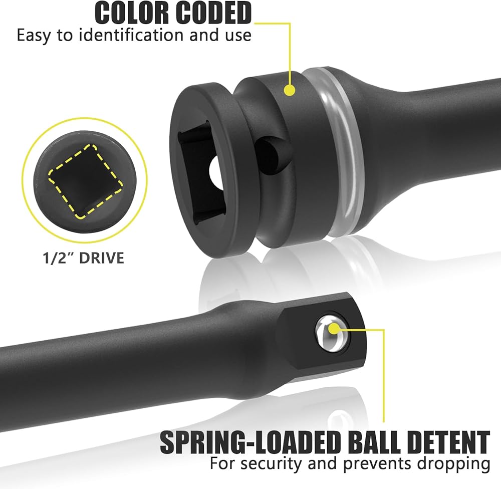 【مجموعة عصا عزم الدوران مكونة من 10 قطع】: قضبان تمديد محرك 1/2 بوصة تتراوح من 65 إلى 150 قدمًا - رطل (90 إلى 200 نيوتن متر). إنها الرفيق المثالي لمفتاح الربط الخاص بك مقاس 1/2 بوصة، مما يضمن إحكامًا آمنًا وفعالاً. من صواميل العروة في سيارتك.