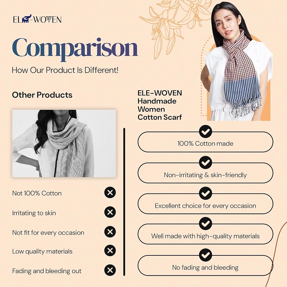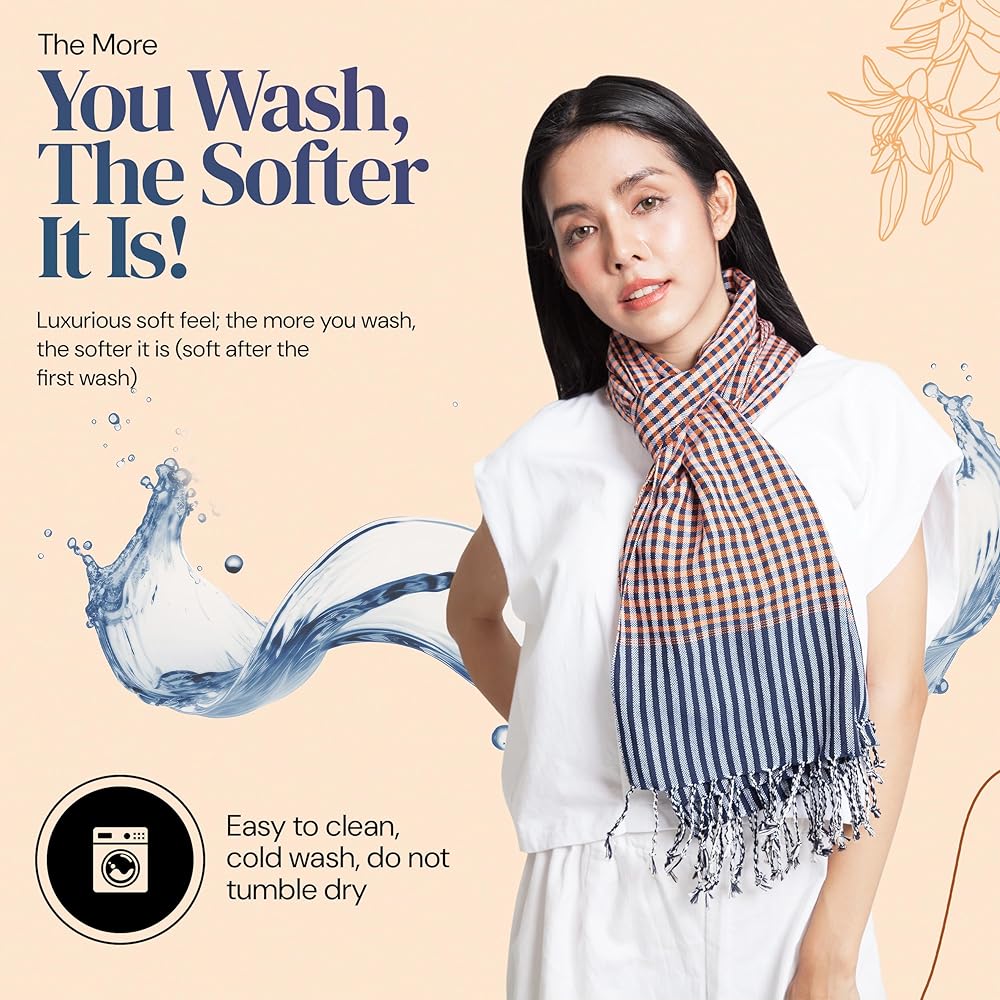 ❄Genuine Handmade Craftsmanship❄ This scarf for women is handmade in Thailand by skillful artisans using premium quality eco-friendly cotton, with intense non-fading colors which are guaranteed to withstand the test of time!