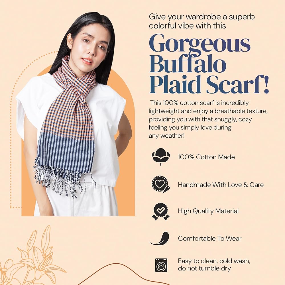 ❄Perfect for Your Wardrobe❄ Staying cozy and protected against chilly winds is definitely a must. The Ele-Woven women's scarf is a lovely choice for office, everyday casual wear or traveling! With its cute design with jacquard braid and buffalo plaid pattern, this cotton scarf is definitely a must for your boho chic style.