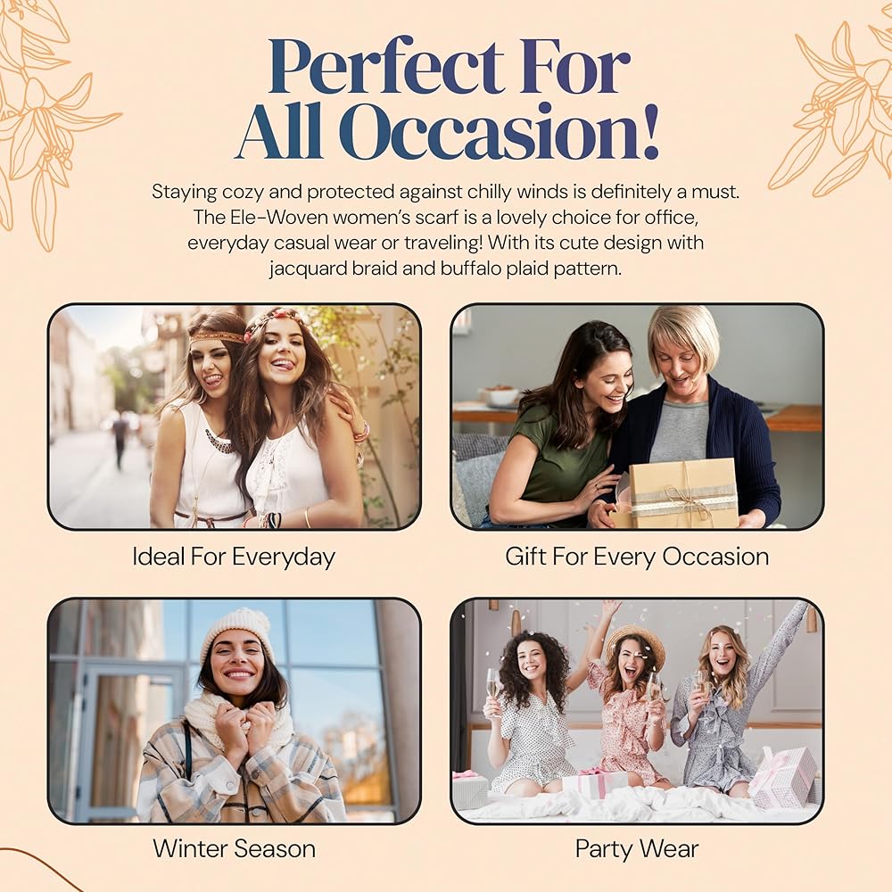 ❄Great Gift for Loved One❄ Order the Ele-Woven buffalo plaid scarf for yourself or as a thoughtful present for your mother, daughter, sister, best friend or colleague and you can be sure everyone will absolutely love its versatility! Our scarves for women are the ideal choice for holidays, birthday, anniversary, Valentine's or any other special occasions!