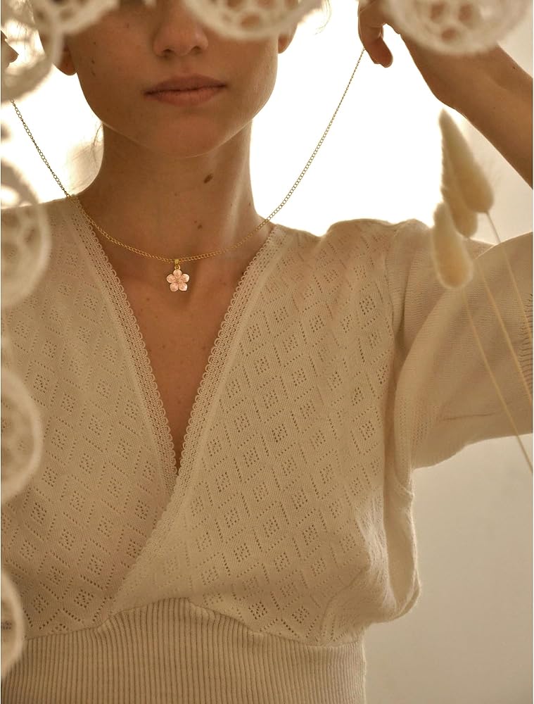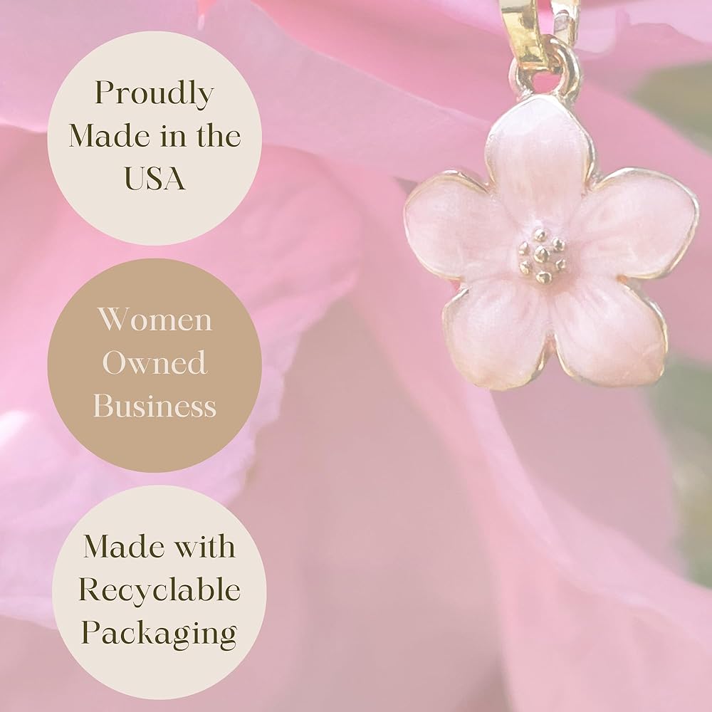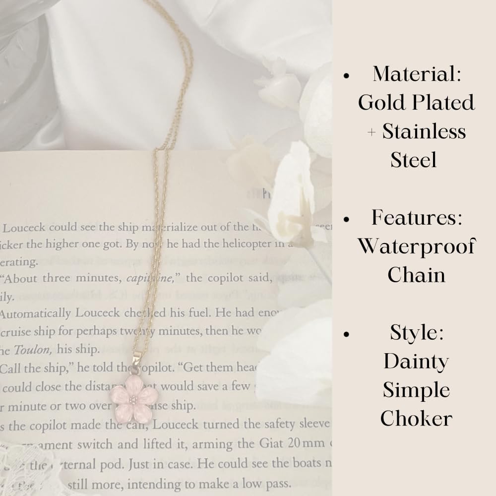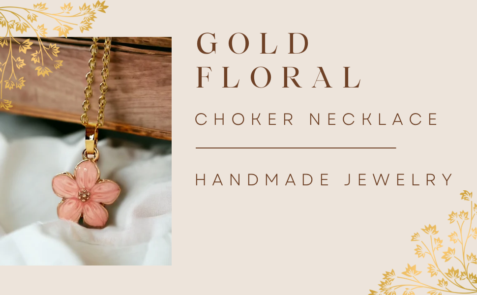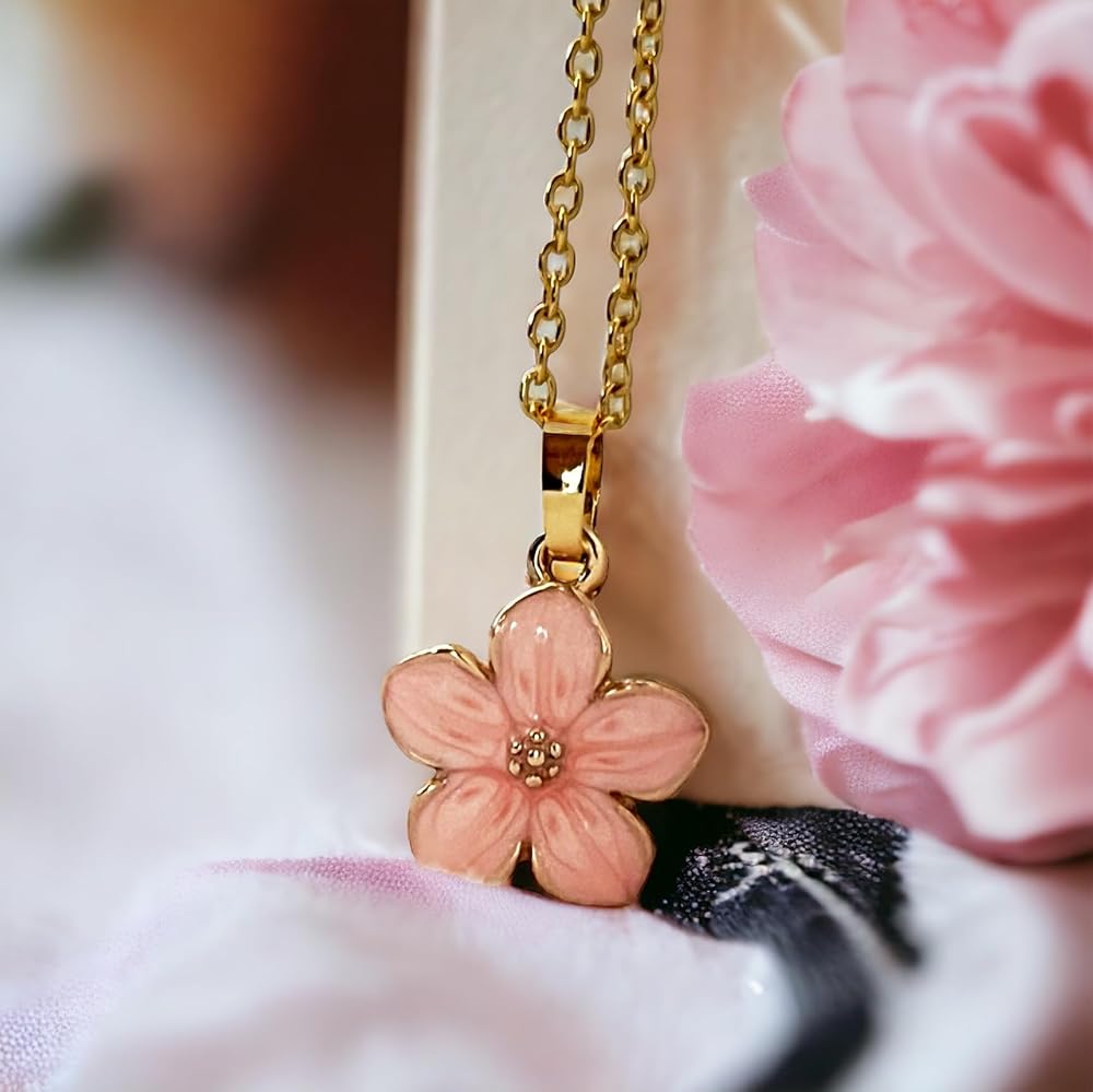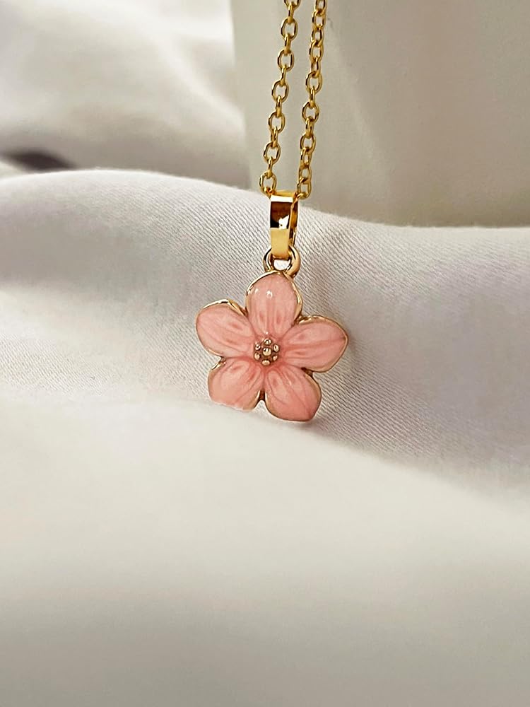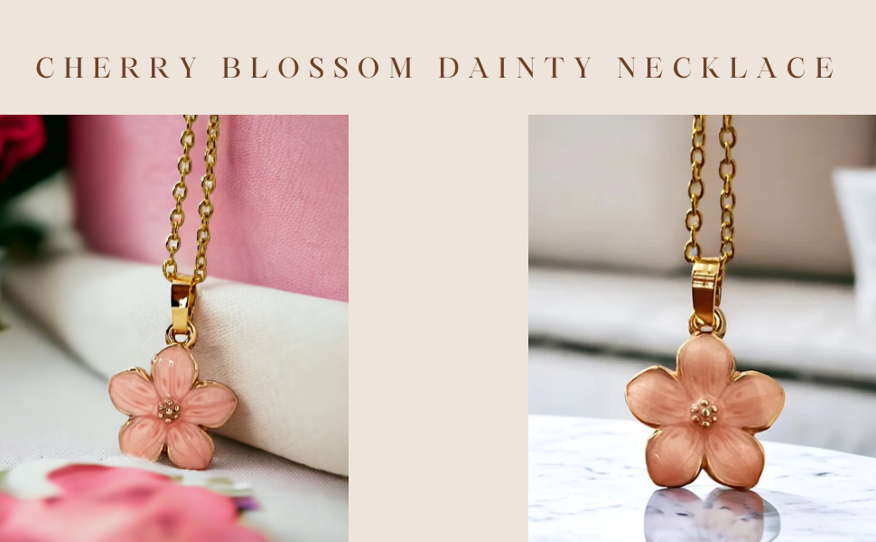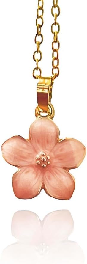 قلادة ذهبية: مصنوعة يدويًا بقلادة جميلة من زهرة الكرز معلقة على سلسلة مطلية بالذهب. هذه القلادة مصنوعة من مادة مطلية بالذهب عالية الجودة.