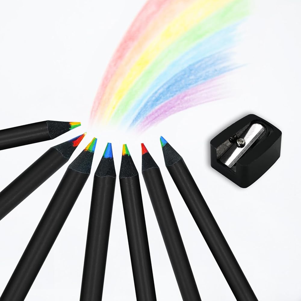 15 قطعة من أقلام الرصاص الخشبية الملونة بألوان قوس قزح، 7 في 1 قلم تغيير الألوان الممتع مع مبراة للرسم والتلوين