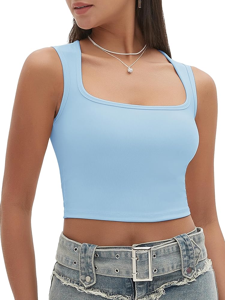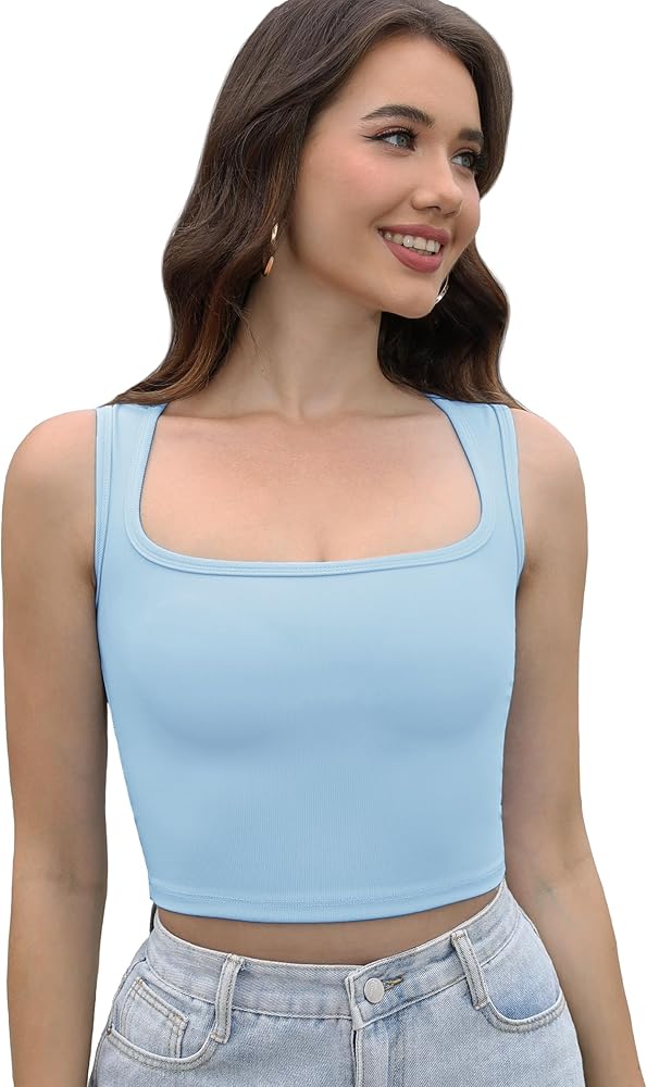 Design: The cropped camis tanks ribbed design increases the beauty of the body line. The square collar design is sexy yet elegant. The wide shoulder straps can cover the bra straps, reduce the pressure on the shoulders, and effectively provide coverage for side boob.