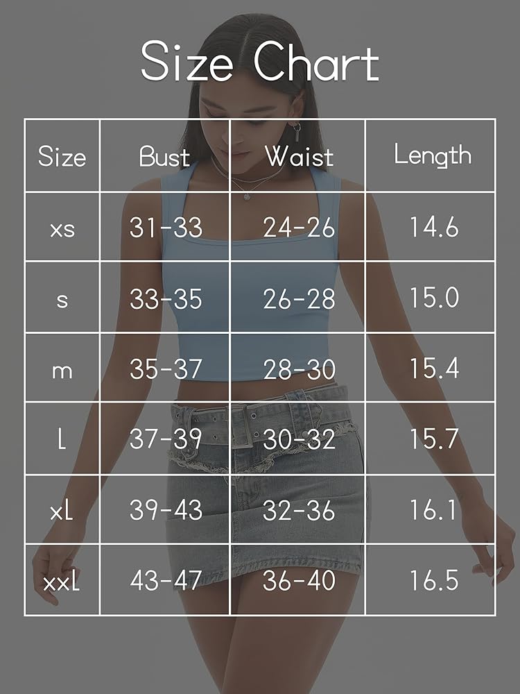 Size: Even though sleeveless camisole tops can fit multiple sizes, we still want you to choose the one that fits you best. XS=US(0-2), S=US(4-6), M=US(8-10), L=US(12-14), XL=US(16-18), XXL=US(20). Anyway, feel free to contact us if you have any needs.