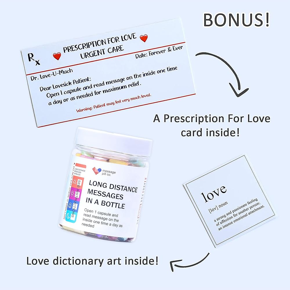 BONUS - A Prescription For Love card inside. Such a special way of showing your happy love. Perfect Gift for Long Distance Relationships, Valentines, Anniversary, Birthday, Just Because Gift, and Christmas.