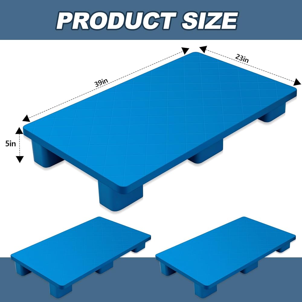 • Package Includes: in each purchase, you'll receive a package that includes 4 pieces of plastic pallets, doubling your storage capacity without the need for additional purchases; Each measures about 39 x 23 x 5 inches, ideal to accommodate various goods for storage or transport