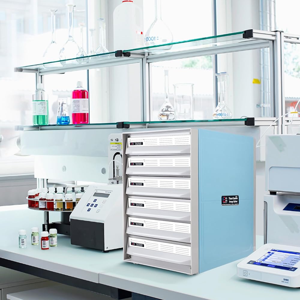 سعة هائلة — يمكن لكل درج استيعاب 350 علبة، مما يمنح الخزانة بأكملها سعة هائلة تصل إلى 2100 علبة. تم حل معضلات التخزين الخاصة بك!