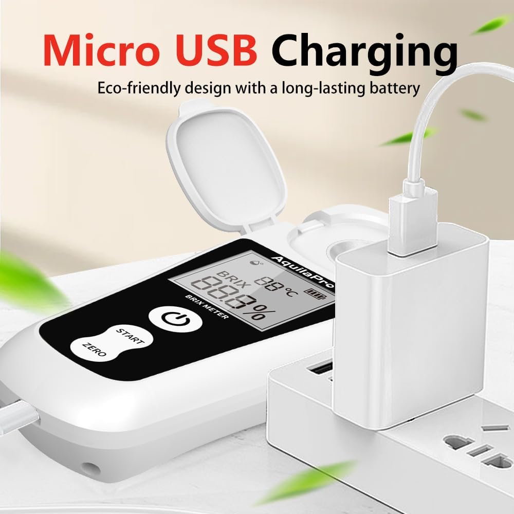 [دقة محسنة]: يتميز بنطاق دقيق من 0-55% بدقة ±0.2% ودقة 0.1%، مما يجعل مقياس انكسار AquilaPro Digital Brix بديلاً متميزًا لأجهزة قياس Brix التقليدية لقياس السكر.