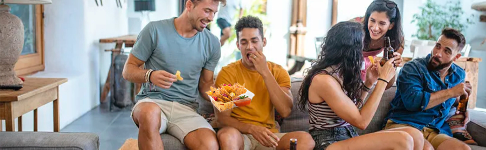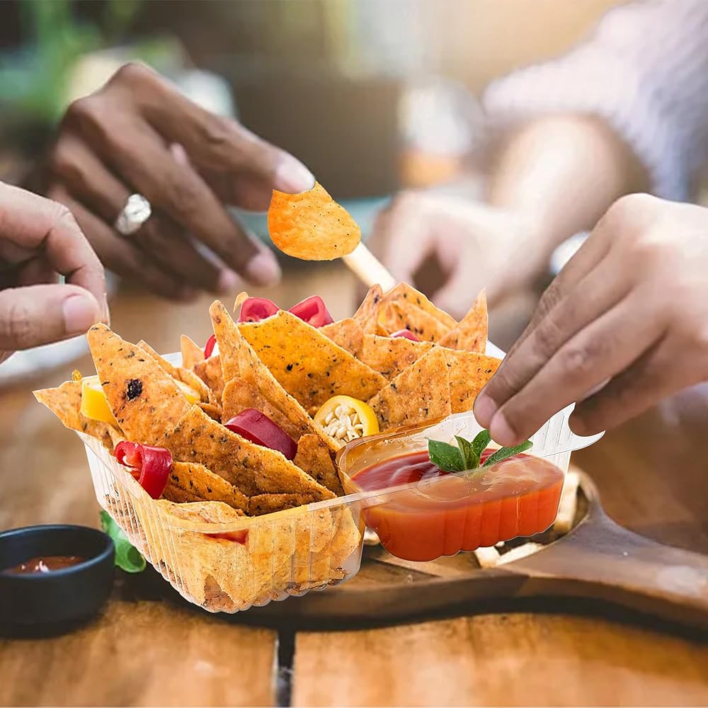 صواني الطعام الفاخرة: مصنوعة من البلاستيك عالي الجودة، تضمن صواني الناتشو التي تستخدم لمرة واحدة المتانة. تضمن هذه الحاويات المتينة المقاومة للكسر والتسرب تجربة طعام خالية من المتاعب ومقاومة للتسرب في التجمعات.
