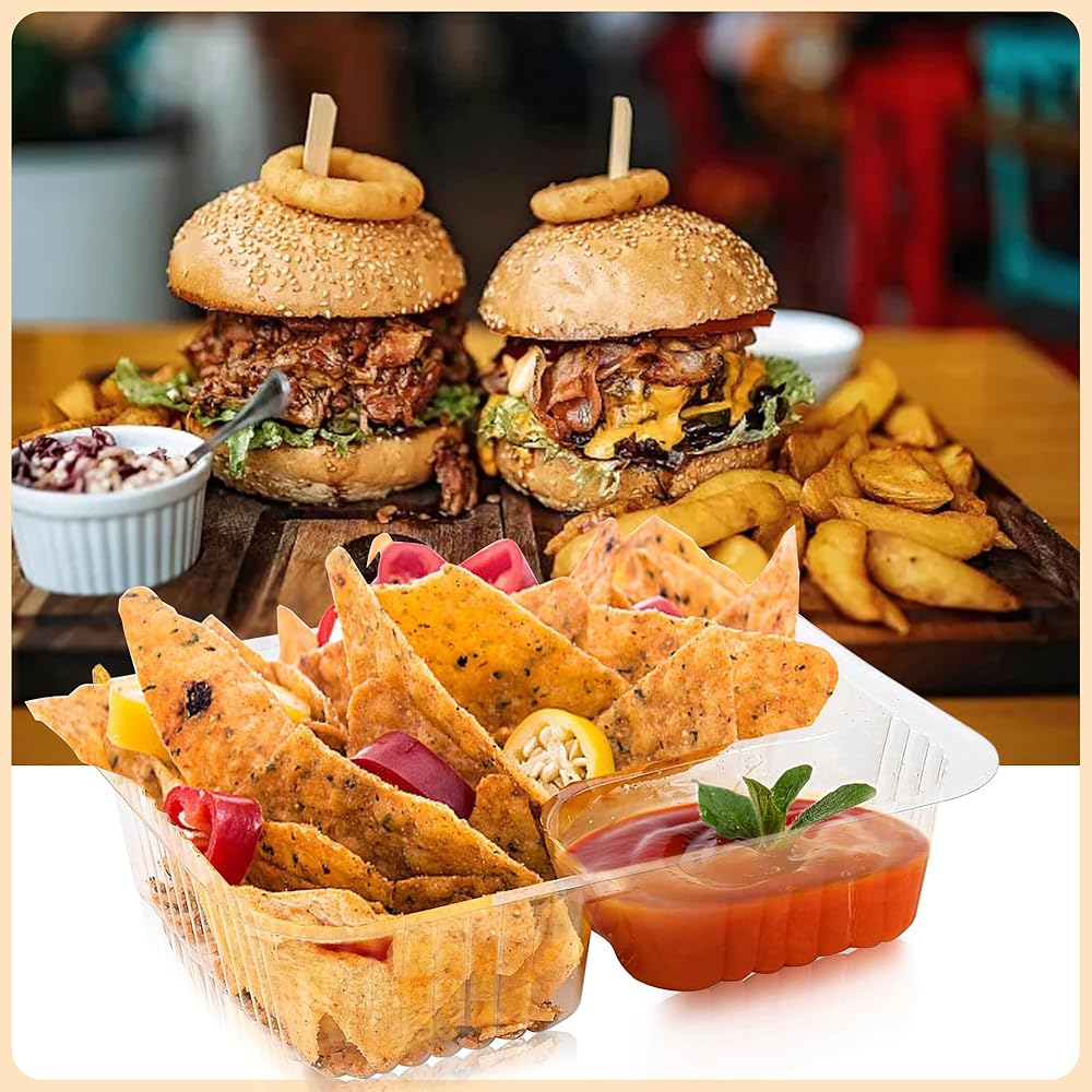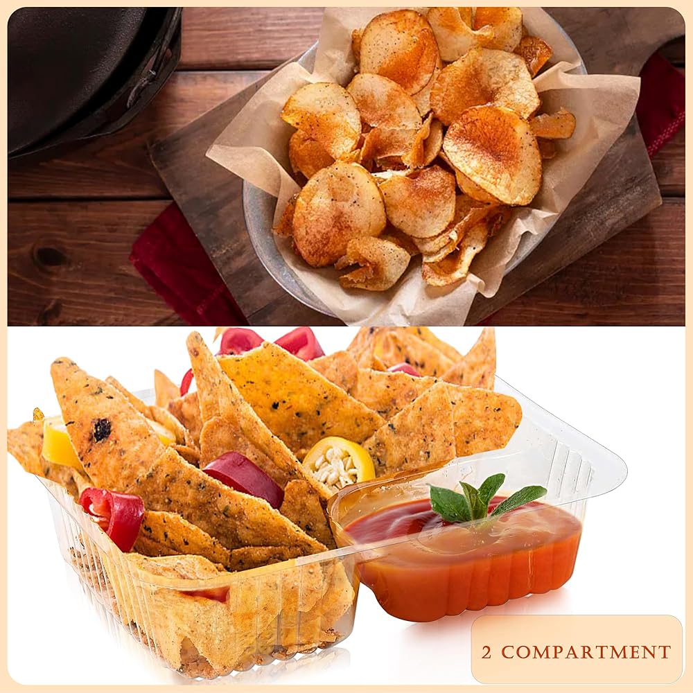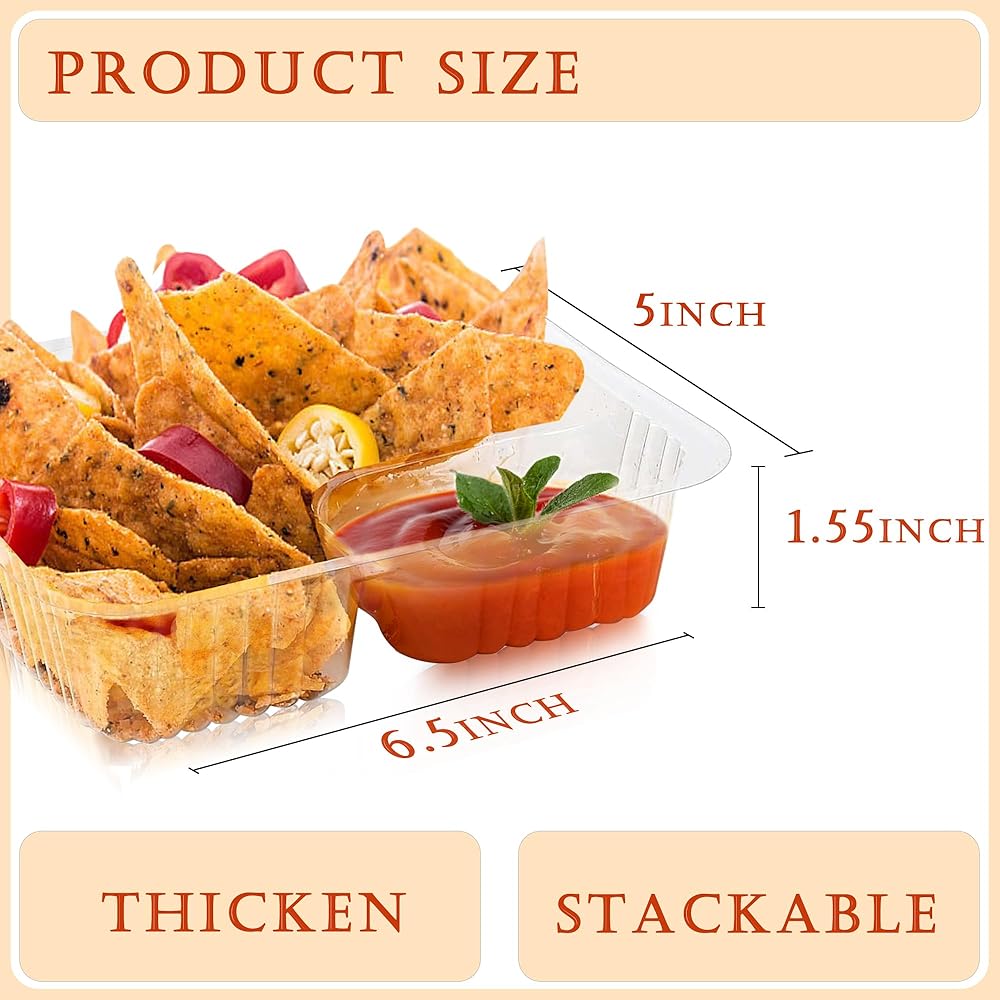 تصميم من جزأين: عزز تجربة تناول الطعام الخاصة بك مع الصينية البلاستيكية المكونة من جزأين والتي تتميز بأقسام مخصصة للطعام المثالي ومجموعات الغمس. سواء كان الناتشوز والجبن أو البطاطس المقلية والكاتشب، استمتع بالغمس المخصص دون نتائج مشبعة.