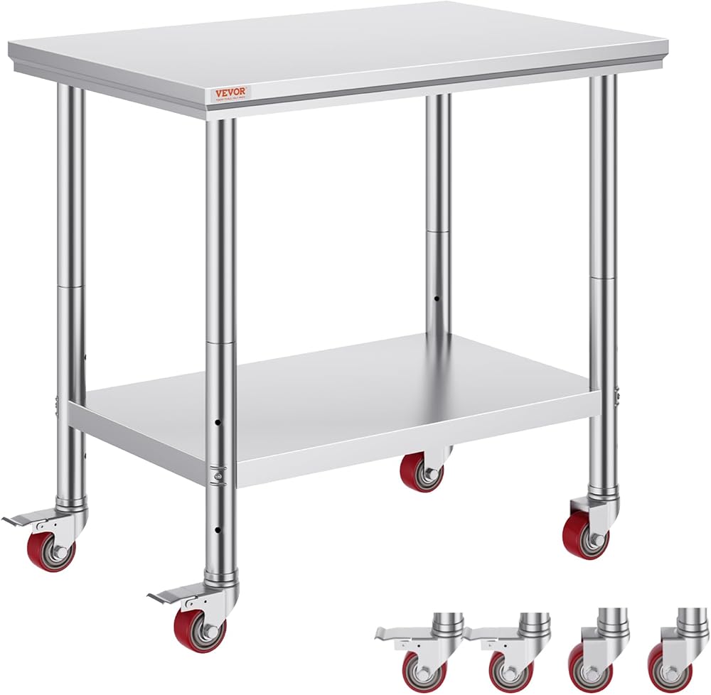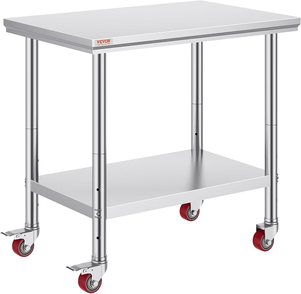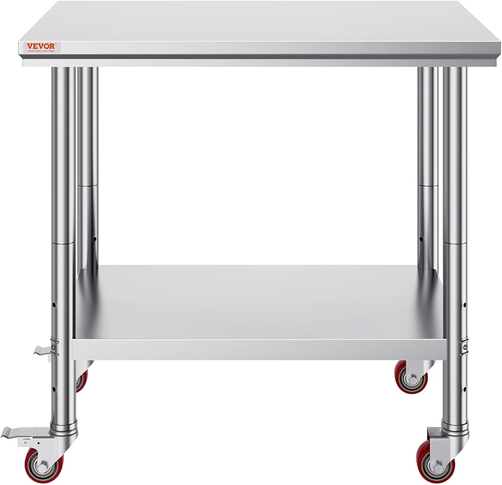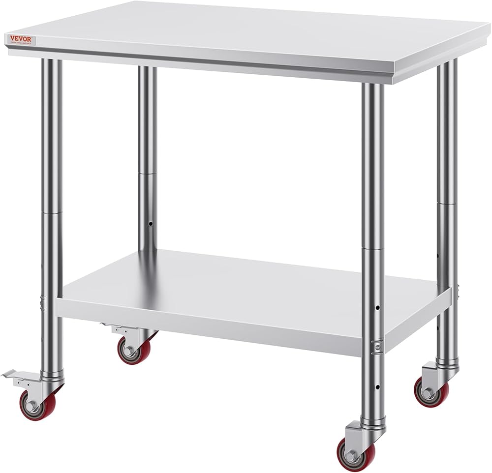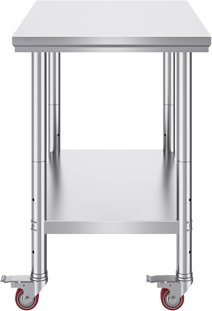 سعة كبيرة - تحمل هذه الطاولة المصنوعة من الفولاذ المقاوم للصدأ ما يصل إلى 220 رطلاً، مع لوح علوي مقاس 35.4 بوصة × 23.6 بوصة (900 × 600 مم) ولوحة سفلية مقاس 30 بوصة × 18.3 بوصة (765 × 465 مم) لمنطقة تخزين كبيرة.