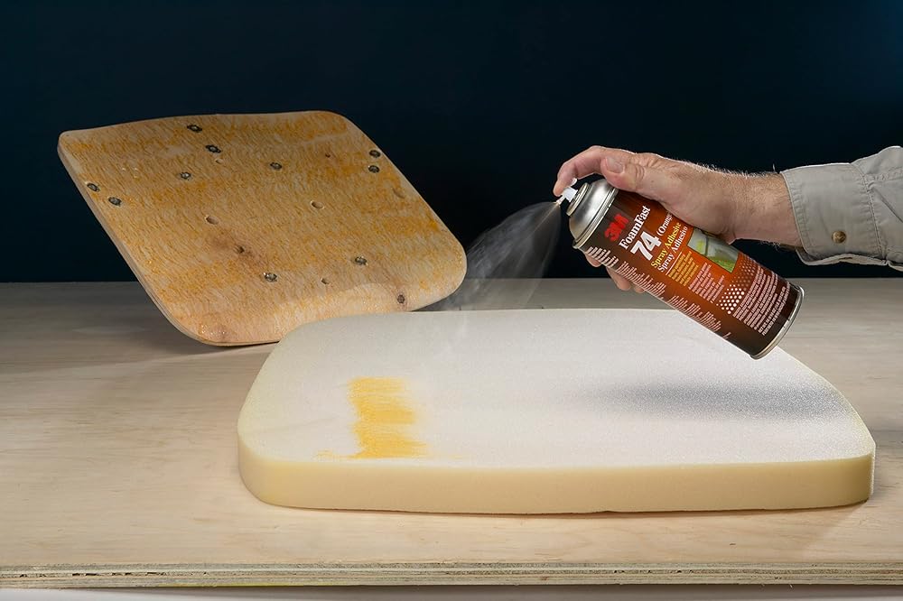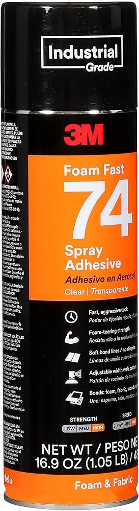 3M Foam Fast 74 Spray Adhesive is a fast-drying spray adhesive that bonds foam and fabric to a wide range of substrates. Its permanent bond provides fast results to keep projects moving ahead. The non-yellowing formula dispenses easily in a lace-spray pattern and applies directly onto surfaces and materials where needed.